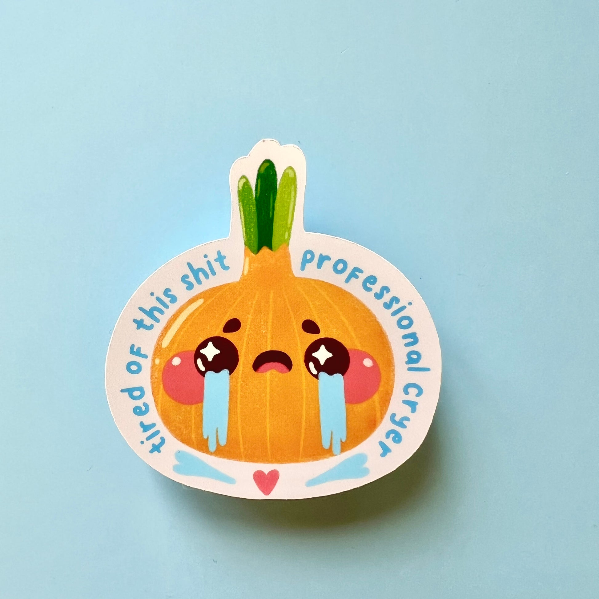 This is the perfect sticker for those “too much” days — too much stress, too much noise, too many emotions. Our adorable little onion, crying big teardrops, is here to remind you: it’s okay to break down. Crying is human, and sometimes, it’s exactly what we need to keep going.