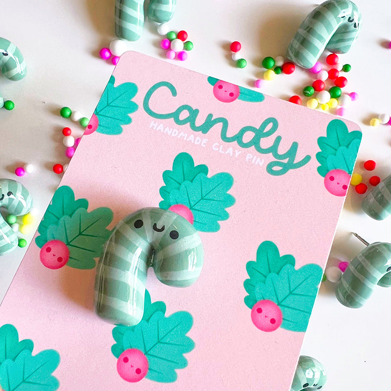 Candy cane clay pin | Polymer Clay | Candy Brooch