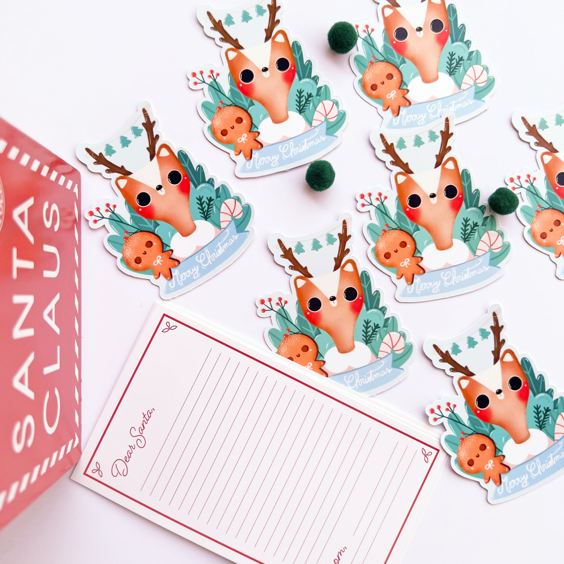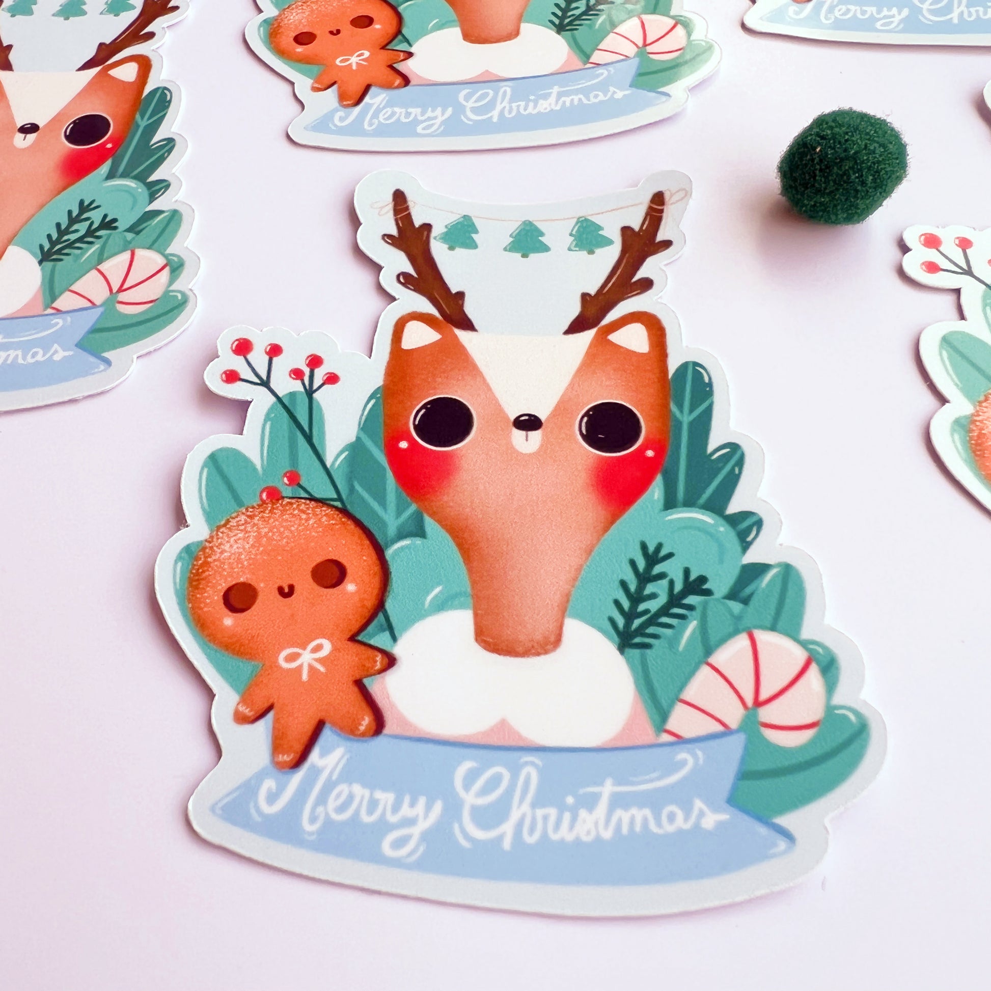 Christmas deer sticker | Glossy white vinyl | Die Cut sticker |