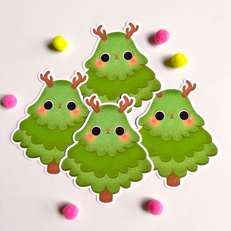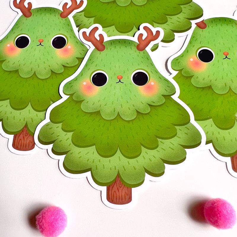 Christmas tree sticker | Glossy white vinyl | Die Cut sticker