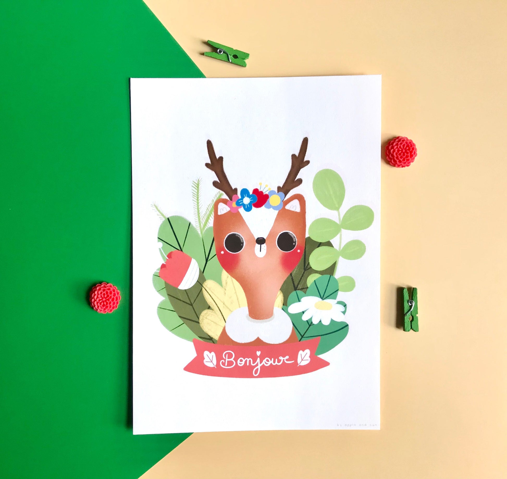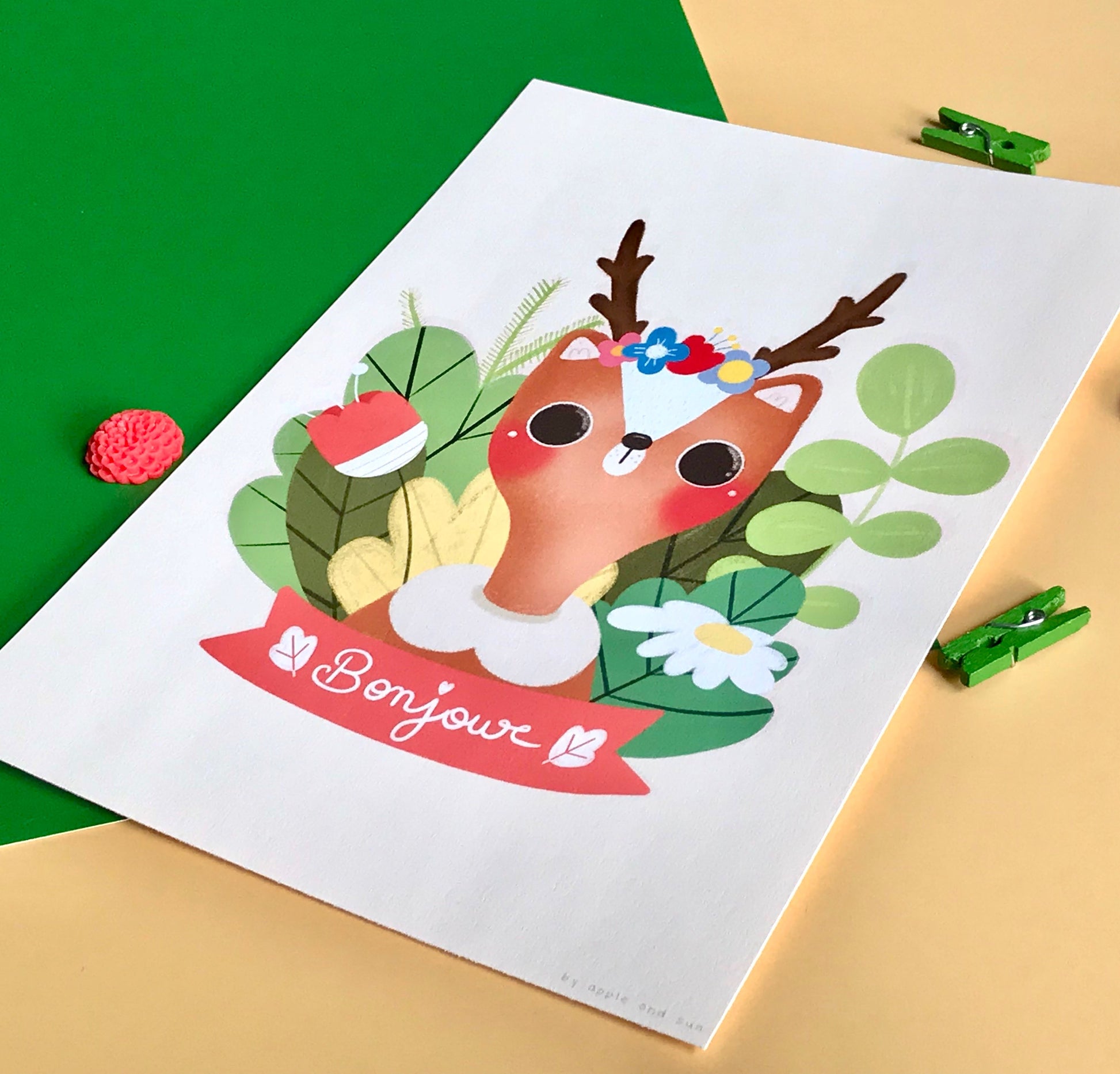 this illustration captures a frozen moment in time, where the innocent grace of fauna and the untamed beauty of flora converge to create a tableau of tranquility and wonder. It is an invitation to immerse oneself in nature's gentleness, to let worries dissipate, and to savor the present moment.