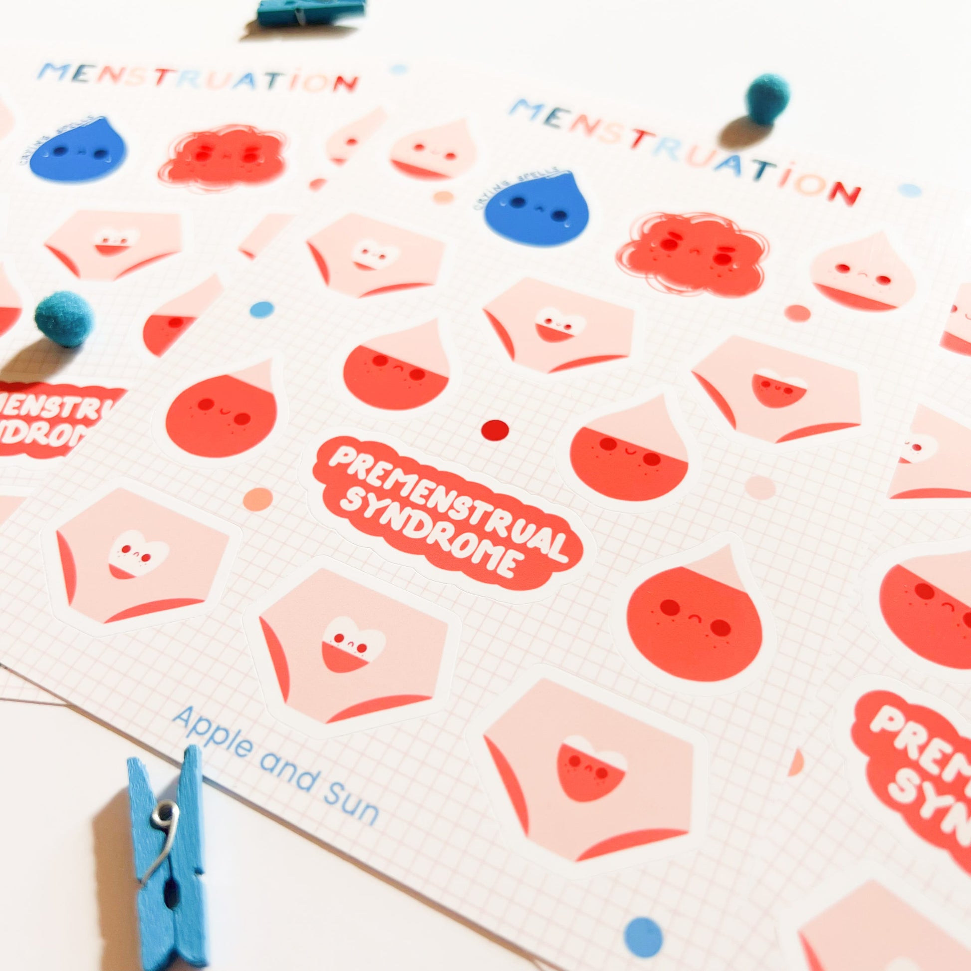 Premenstrual syndrome stickers | Glossy white vinyl | Period stickers sheet