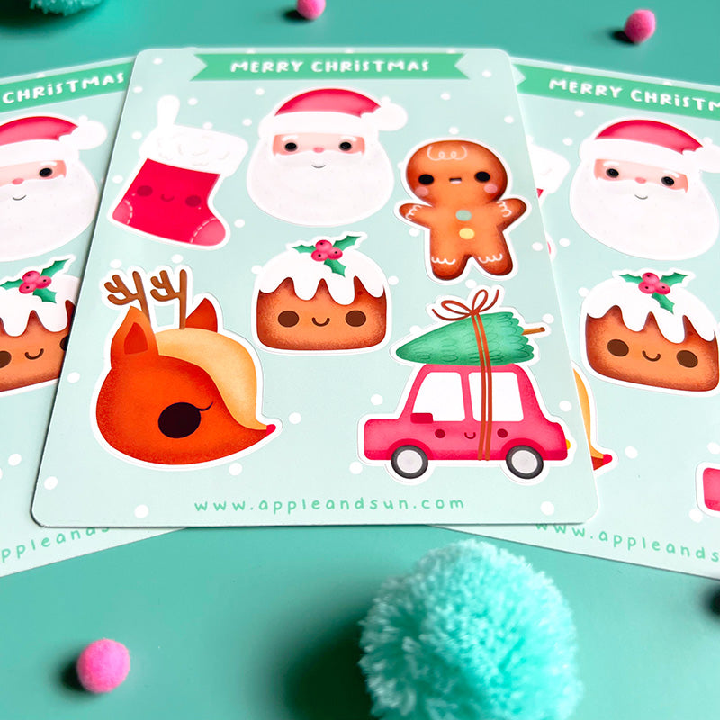 Cute Christmas stickers | Glossy white vinyl | Christmas stickers sheet |
