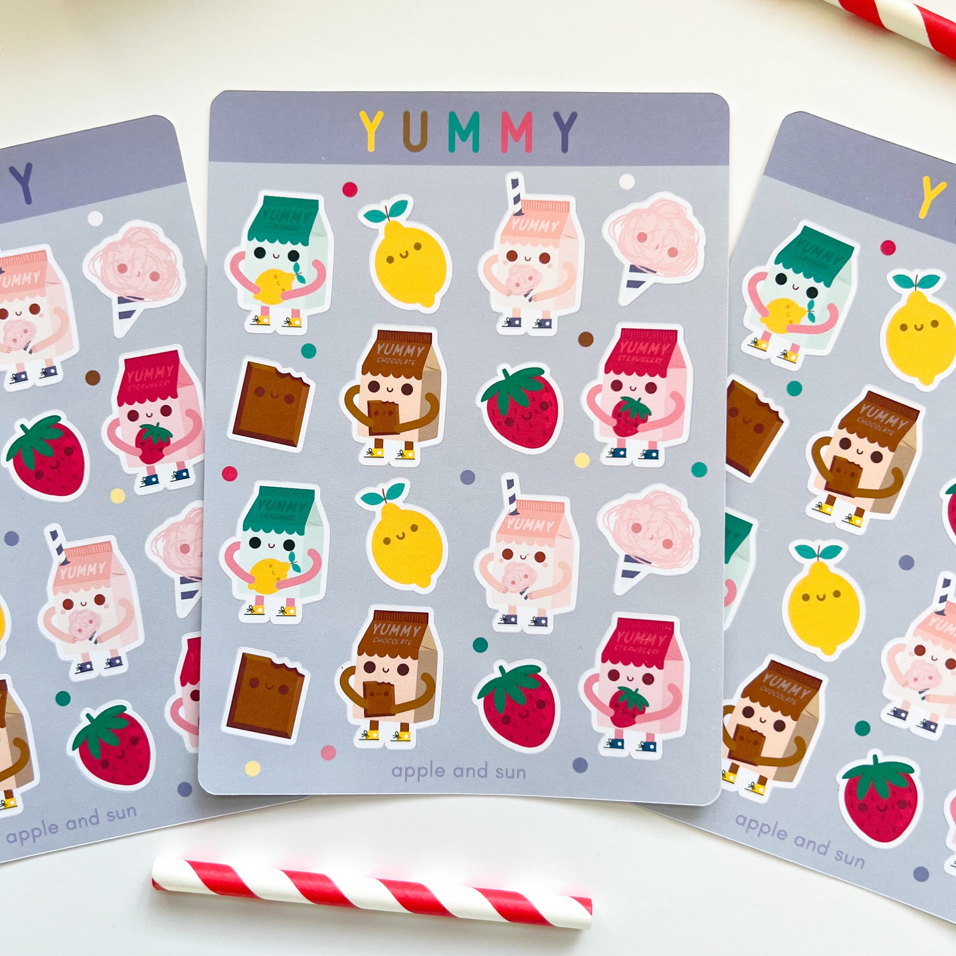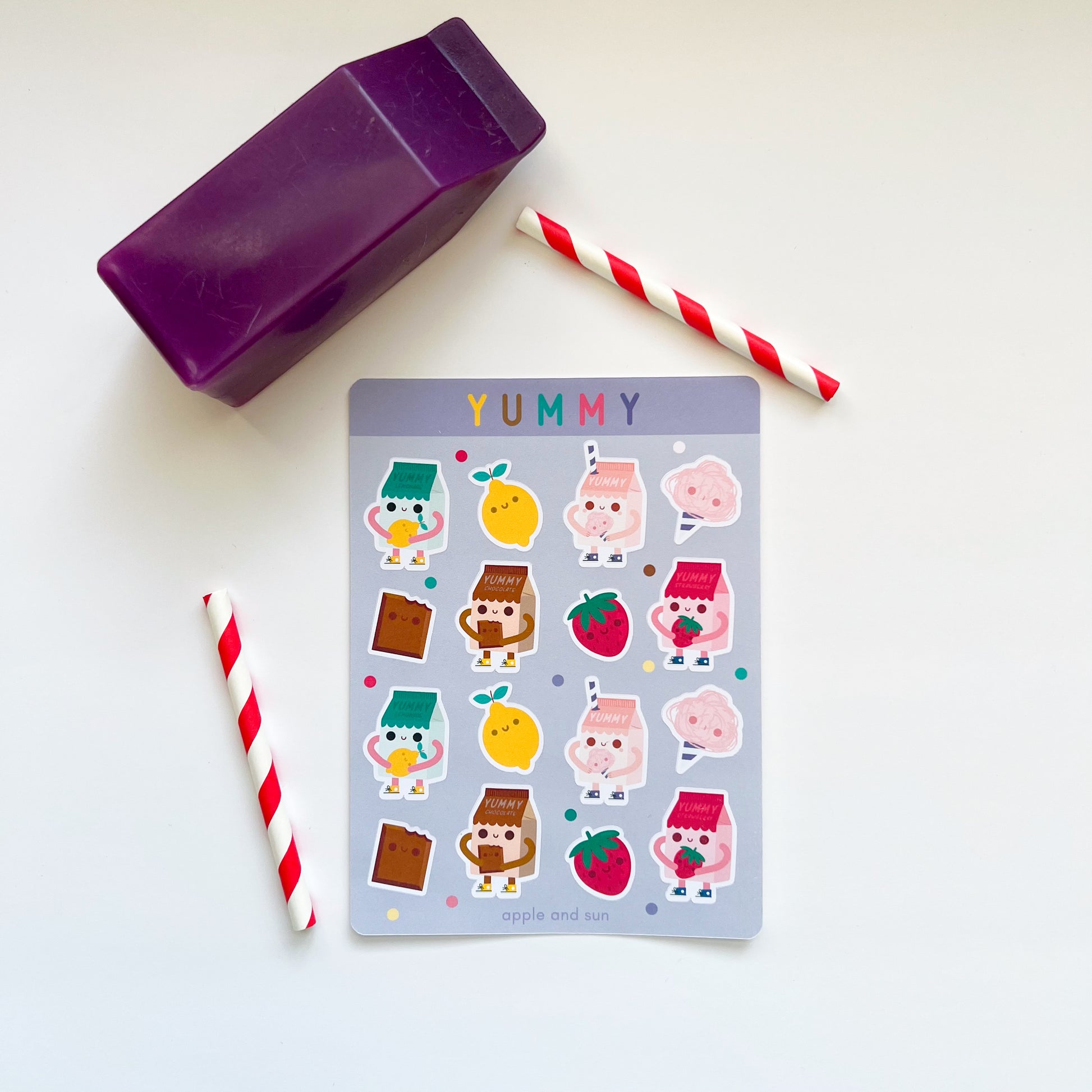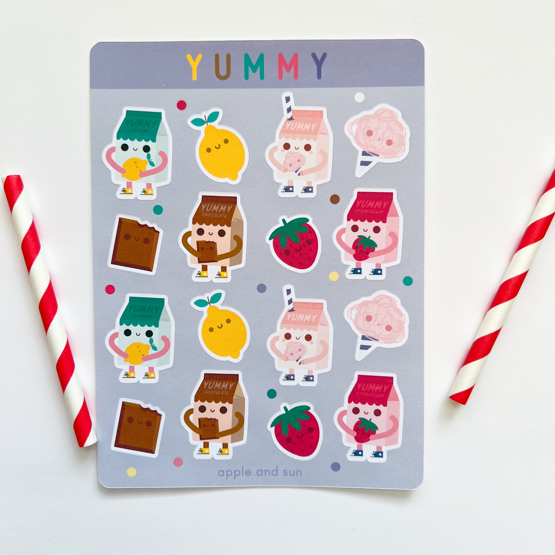 Yummy stickers | Matte white vinyl | Cute stickers sheet |