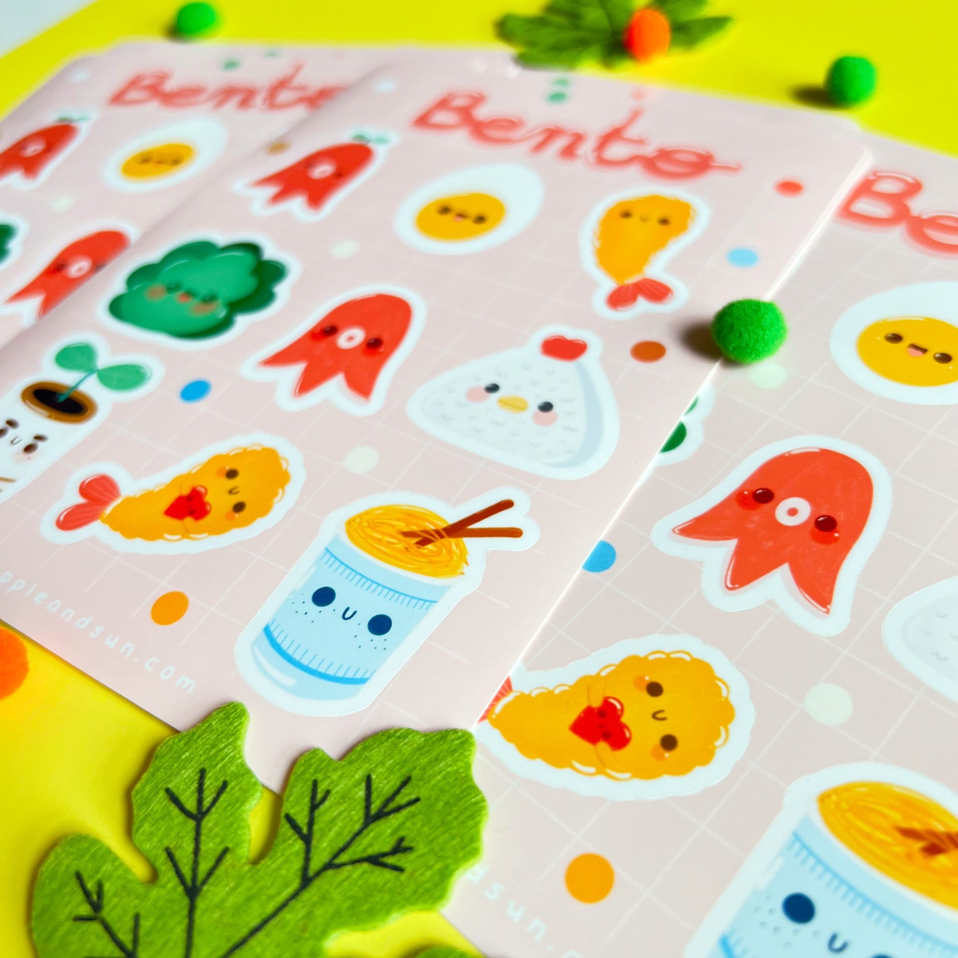 Bento stickers | Glossy white vinyl | Food stickers sheet