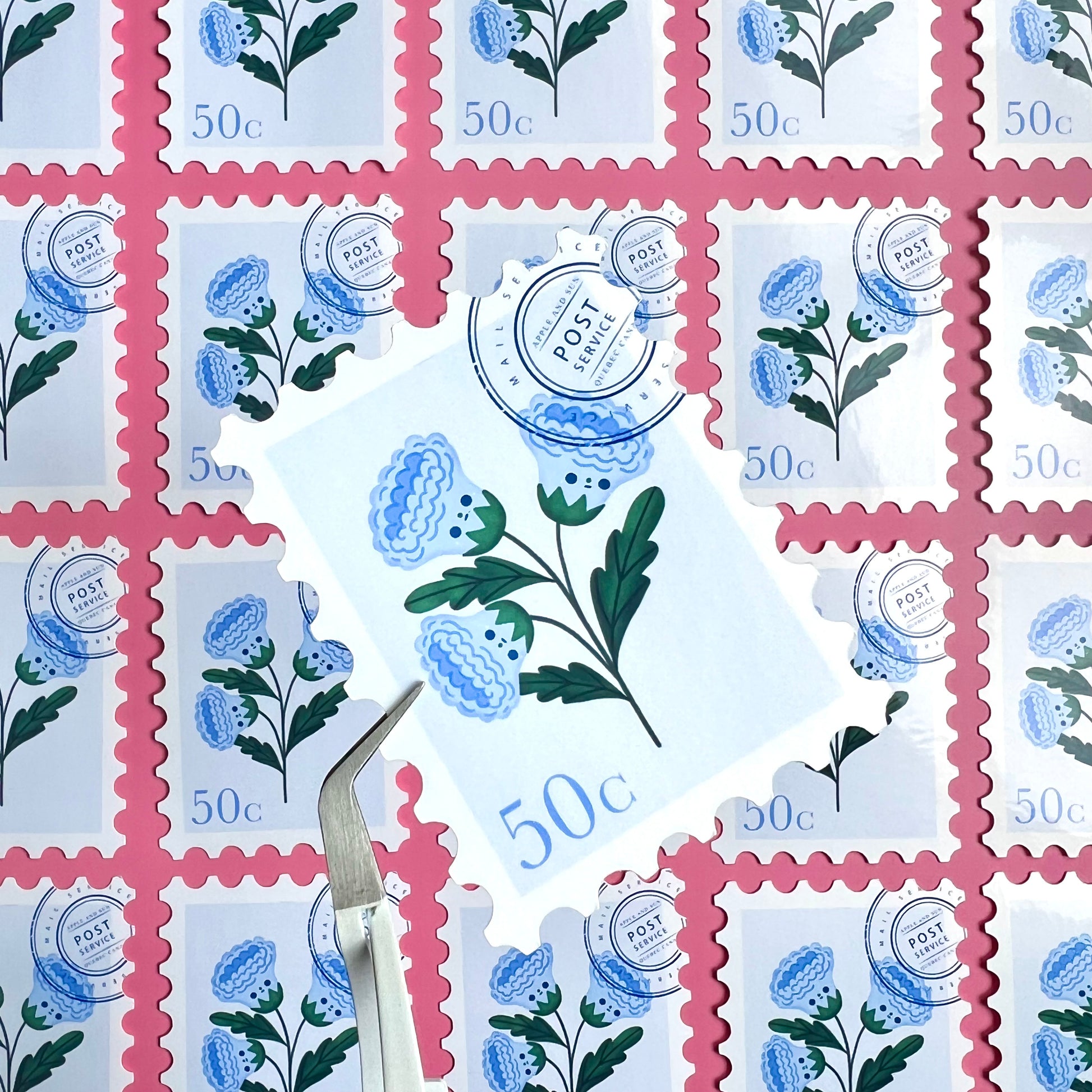 Cute campanula stamp sticker | Glossy white vinyl | Stamp Die cut sticker |