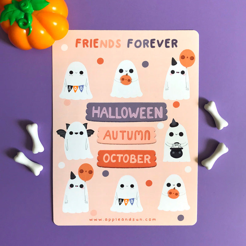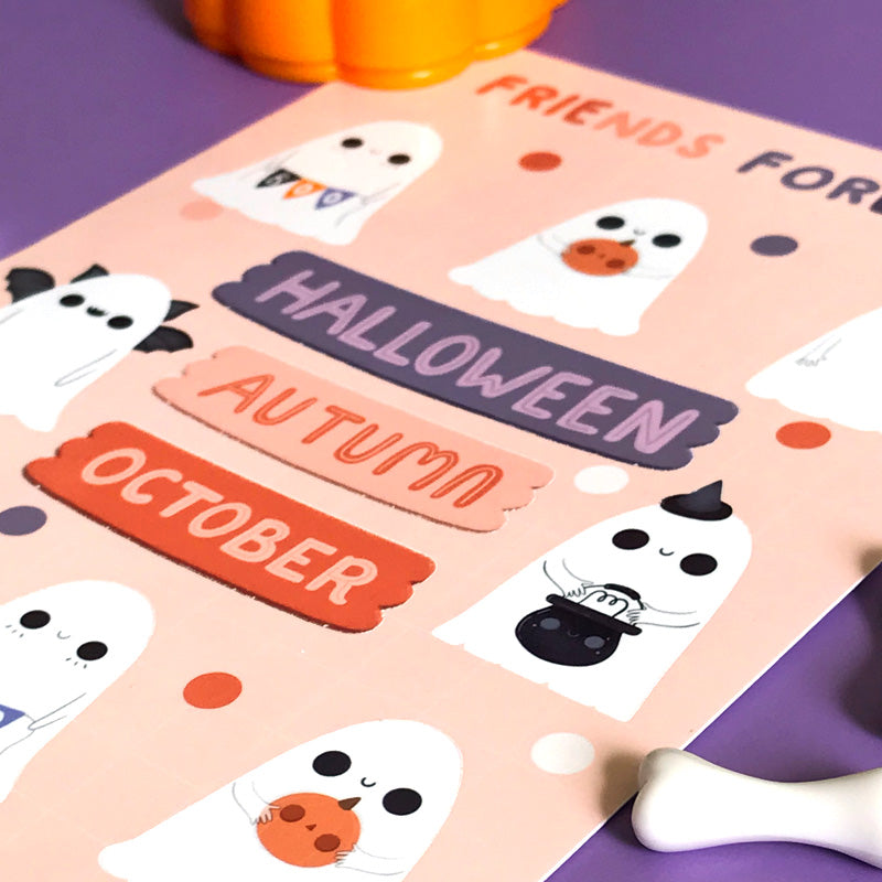 Cute ghost stickers | Glossy white vinyl | Halloween stickers sheet