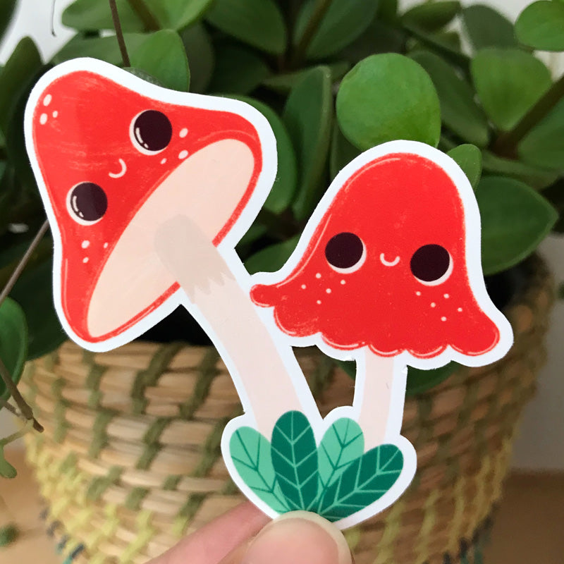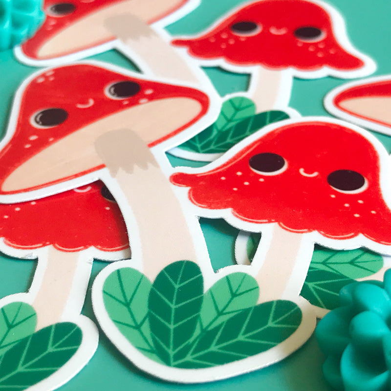 Cute mushrooms Sticker | Glossy White Vinyl | Die Cut Sticker |