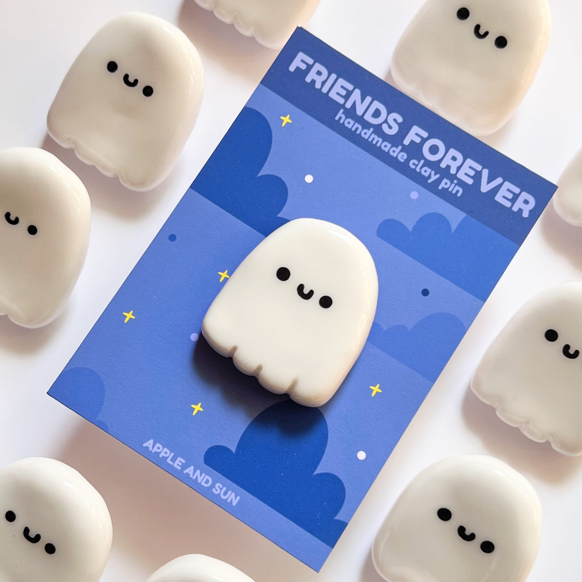 Introducing our irresistible little ghost clay pin – the perfect companion to add a dose of adorableness to your outfit, especially during the enchanting season of Halloween! Each brooch is carefully crafted with love, its soft form and minimalist design make it a true little marvel.