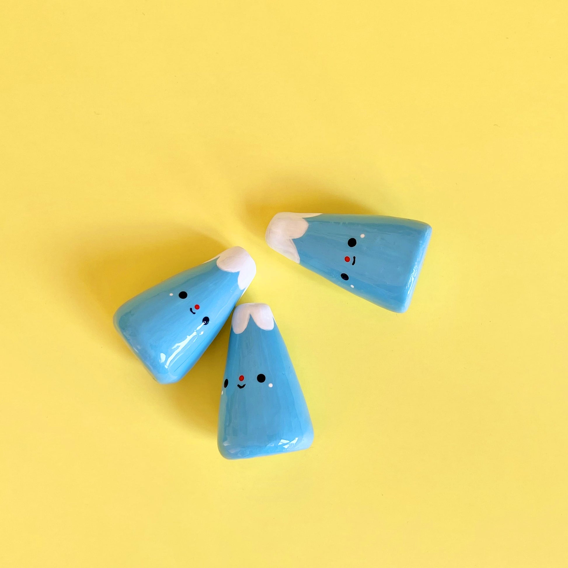 Meet Fufu, a delicate little blue mountain topped with pristine snow, entirely handcrafted in polymer clay and carefully hand-painted. Each piece is unique and carries the charm of true artisanal work.