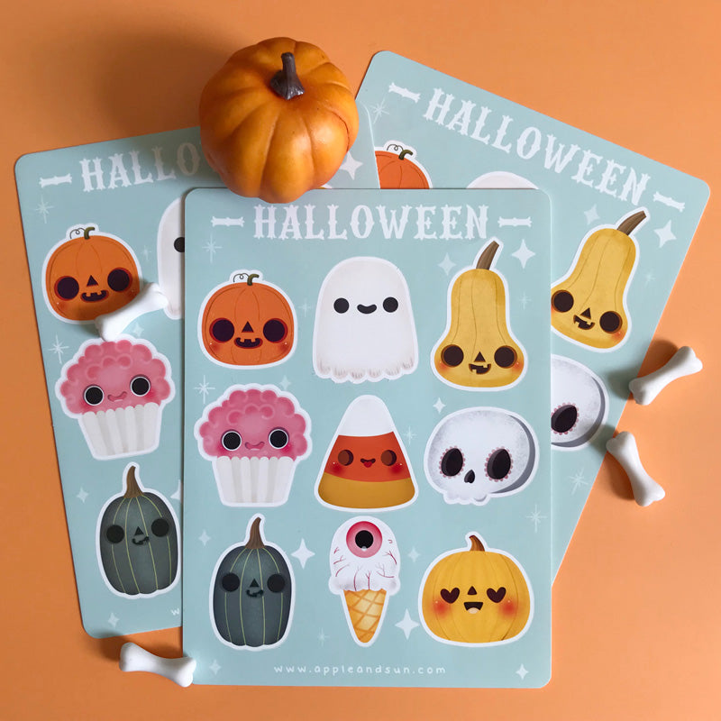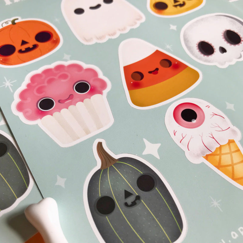 Cute Halloween stickers | Glossy white vinyl | Halloween stickers sheet |