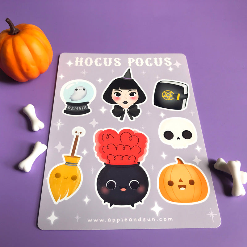 ntroducing our captivating sticker set titled "Hocus Pocus" - the perfect magical touch to celebrate Halloween in style! This enchanting sticker sheet is specially designed for lovers of magic and the mysterious ambiance of this enchanting season.