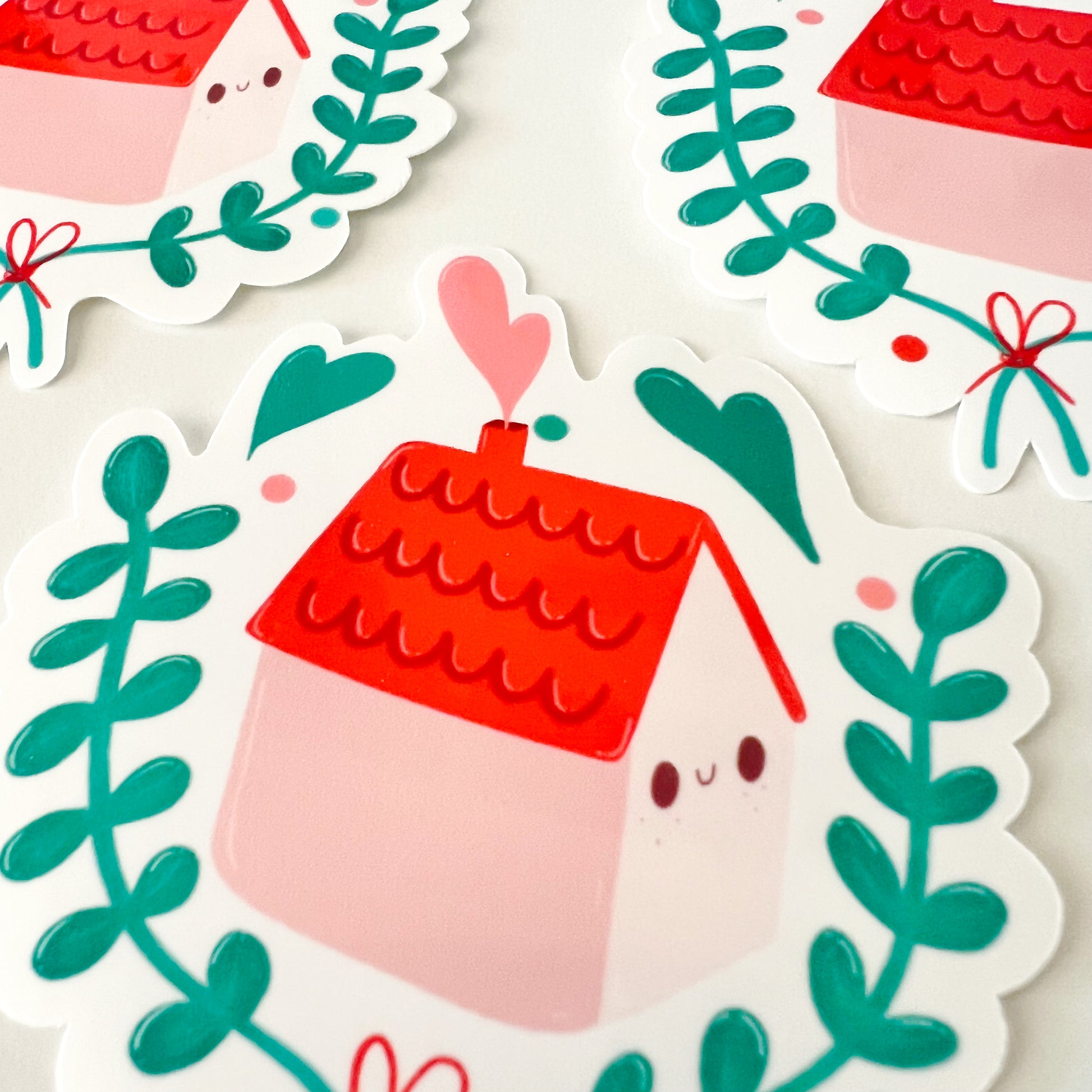 Discover our charming sticker depicting an adorable little house with a red roof, complemented by a chimney gently releasing ethereal smoke. This sticker embodies the very essence of love, family, and the joy of coming together. The house evokes a warm and comforting feeling, a place where memories are woven and bonds are strengthened.