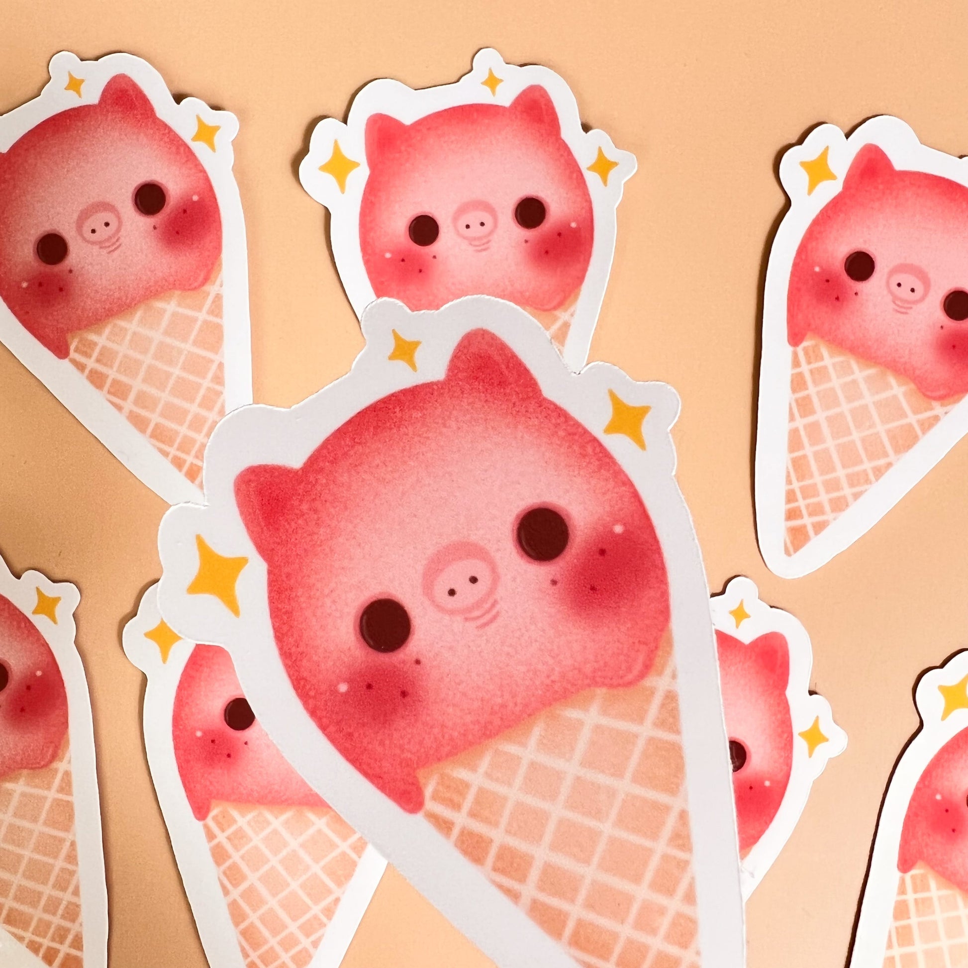 Ice cream piggy sticker | Glossy white vinyl | Die Cut sticker | Ice cream sticker