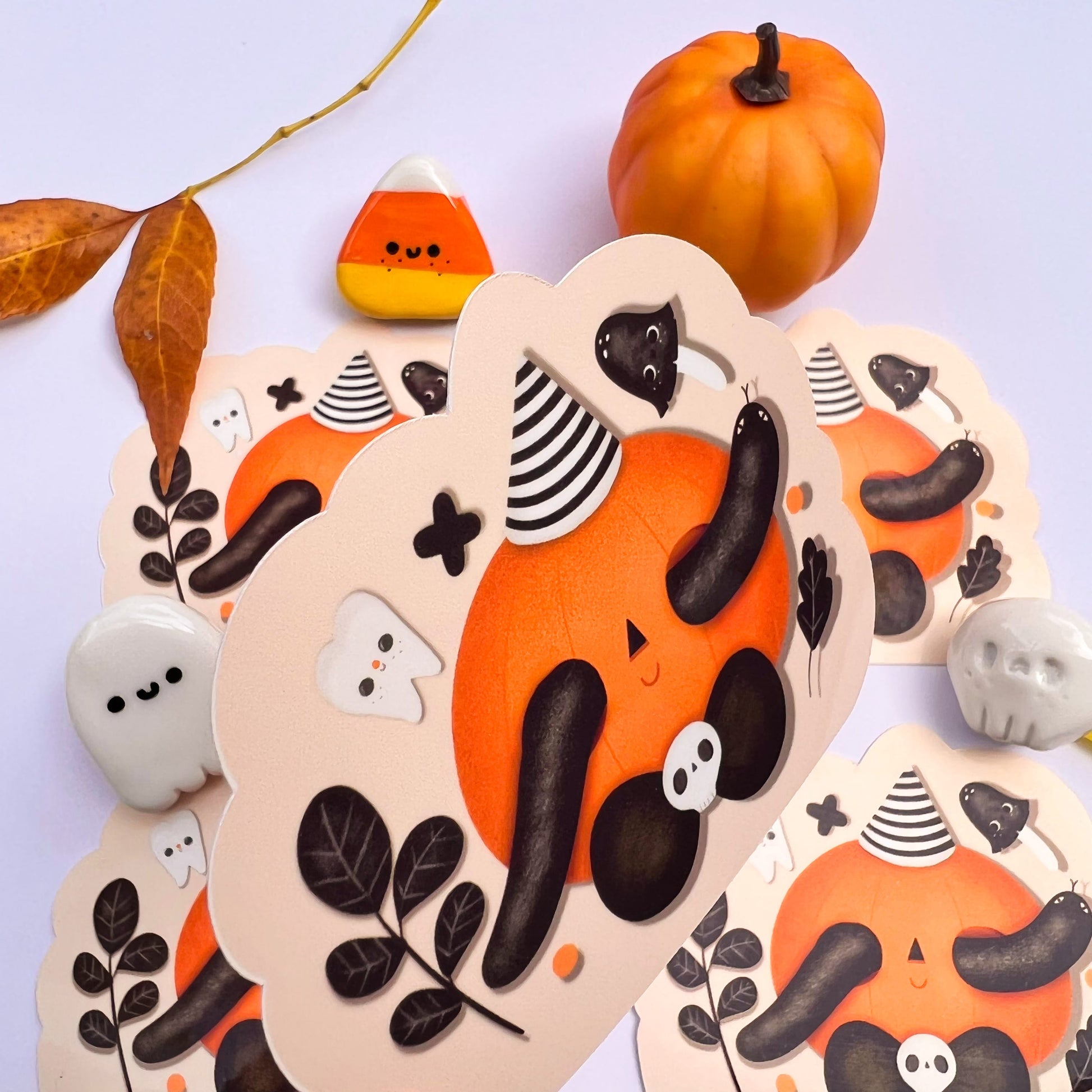 Pumpkin sticker | Glossy white vinyl | Die Cut sticker | Halloween sticker