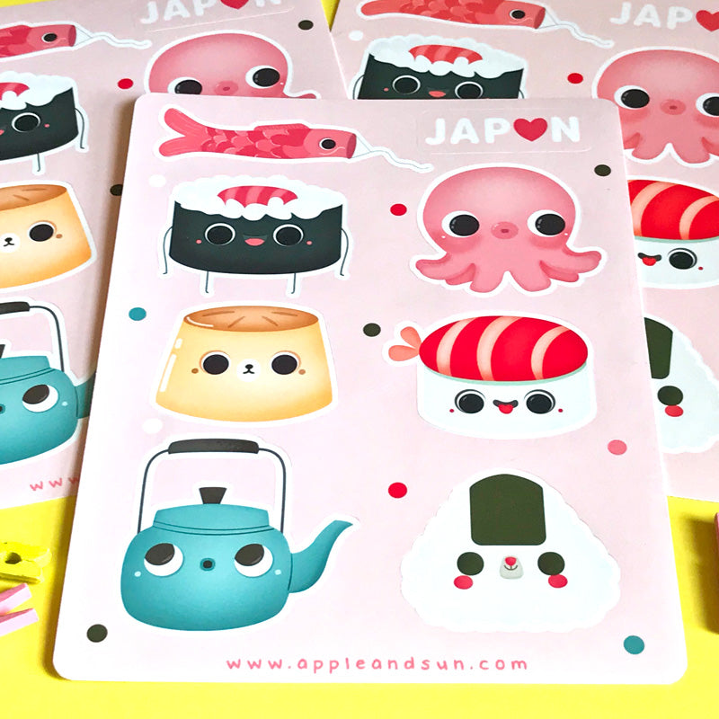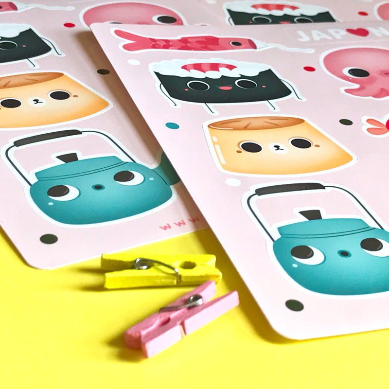 Dive into a world of adorable delight with our super kawaii illustrated sticker sheet, where Japanese cuisine comes to life with a touch of sweetness and vibrant colors! Every little corner of this sheet is filled with culinary treasures that will melt your heart.