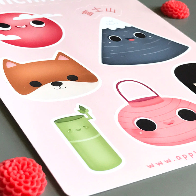 Welcome to the enchanting world of illustrated stickers with a Japanese theme. This sheet of captivating stickers takes you on a journey through the richness of Japanese culture, blending tradition and modernity. Each illustration is meticulously crafted to evoke the beauty and depth of this fascinating country.
