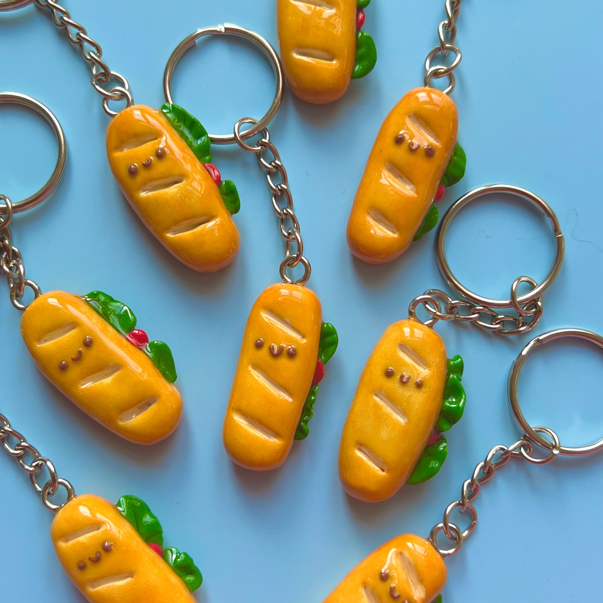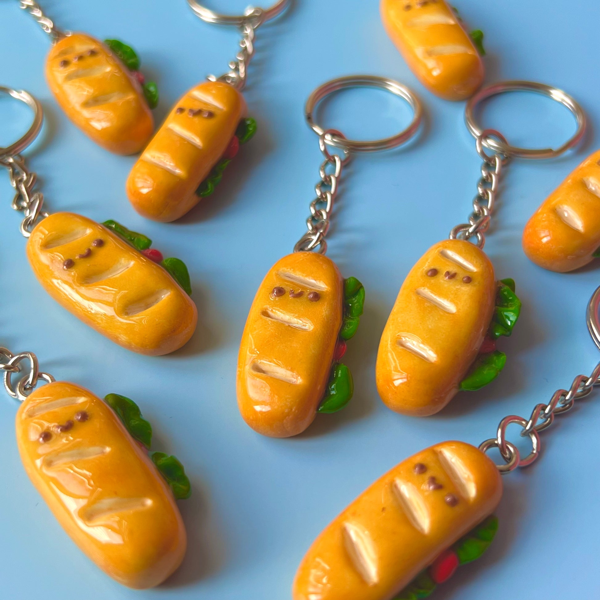Crafted from high-quality polymer clay, this Baguette keychain is durable, lightweight, and pleasant to the touch.