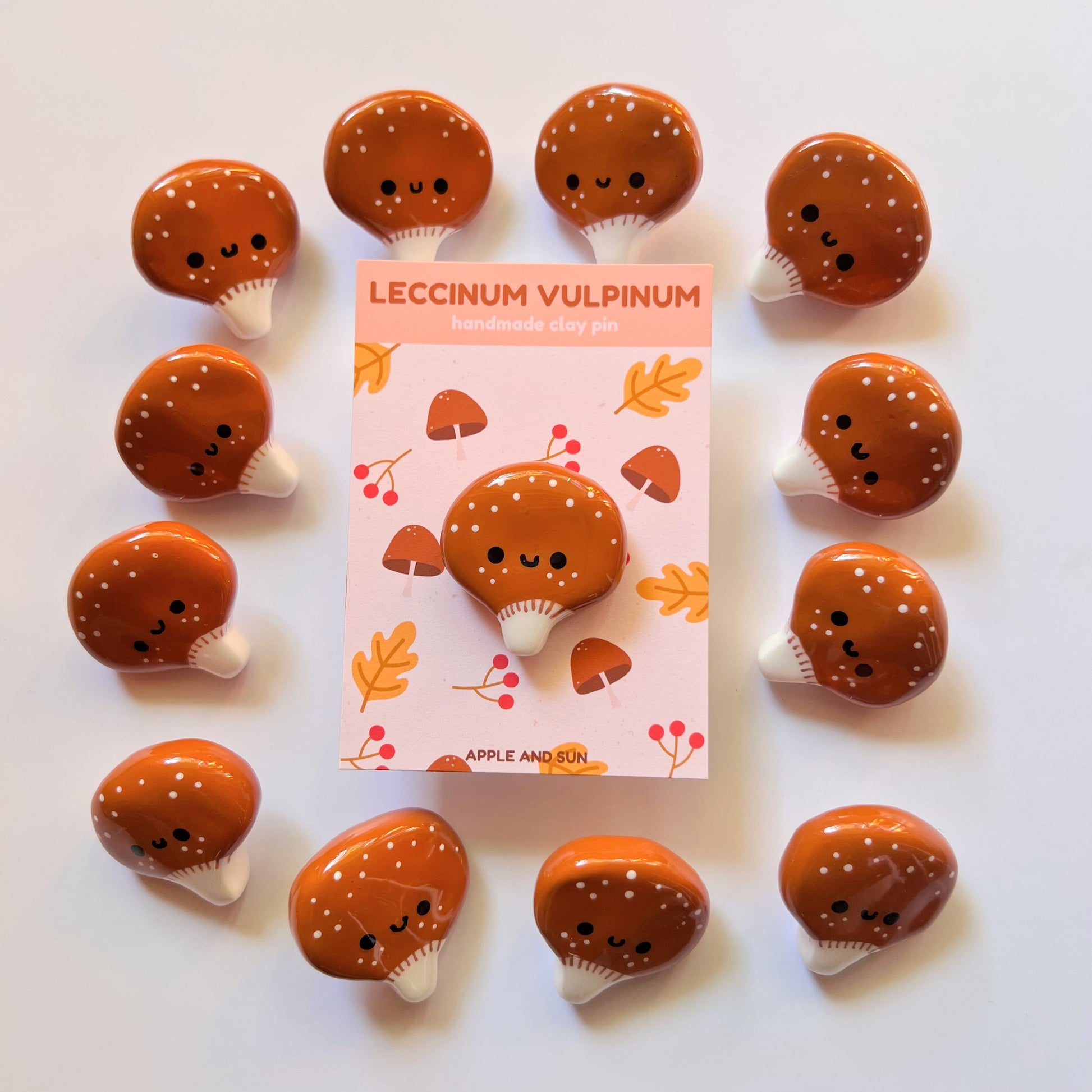 Whether for yourself or a loved one, this "Kawaii Leccinum Vulpinum Mushroom Brooch" makes a perfect gift for nature lovers, kawaii admirers, and fashion enthusiasts.