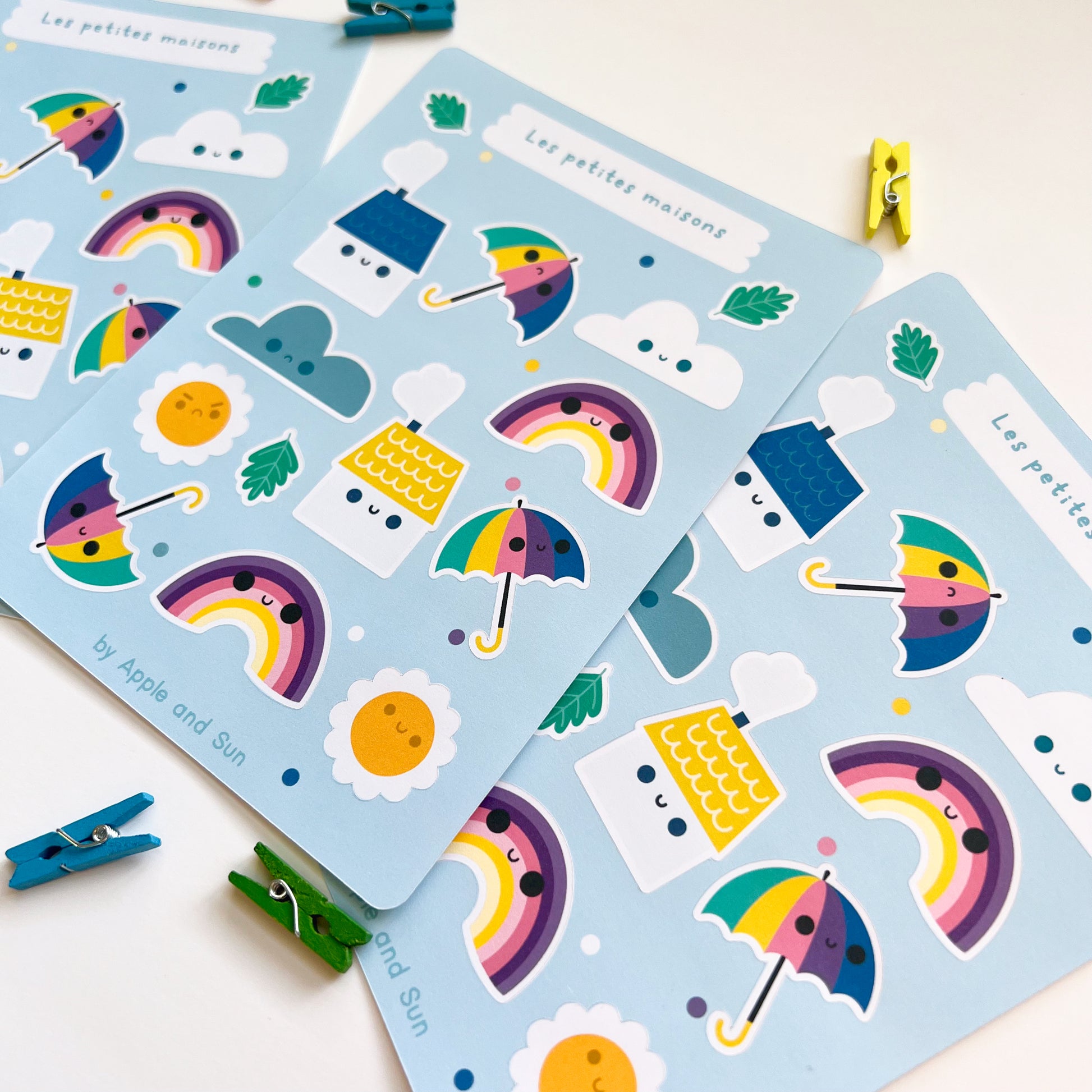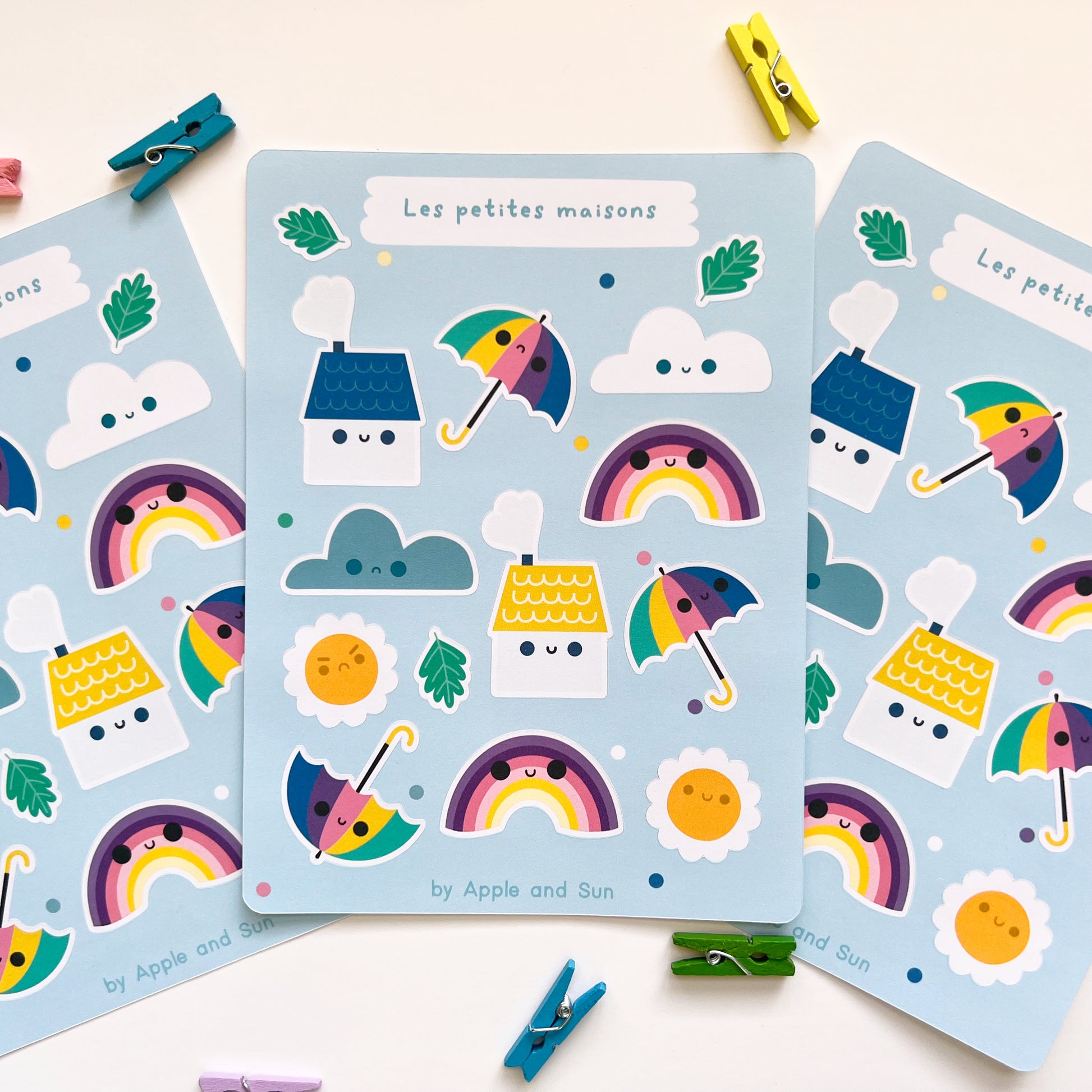 Les petites maisons stickers | Matte white vinyl | Cute stickers sheet |