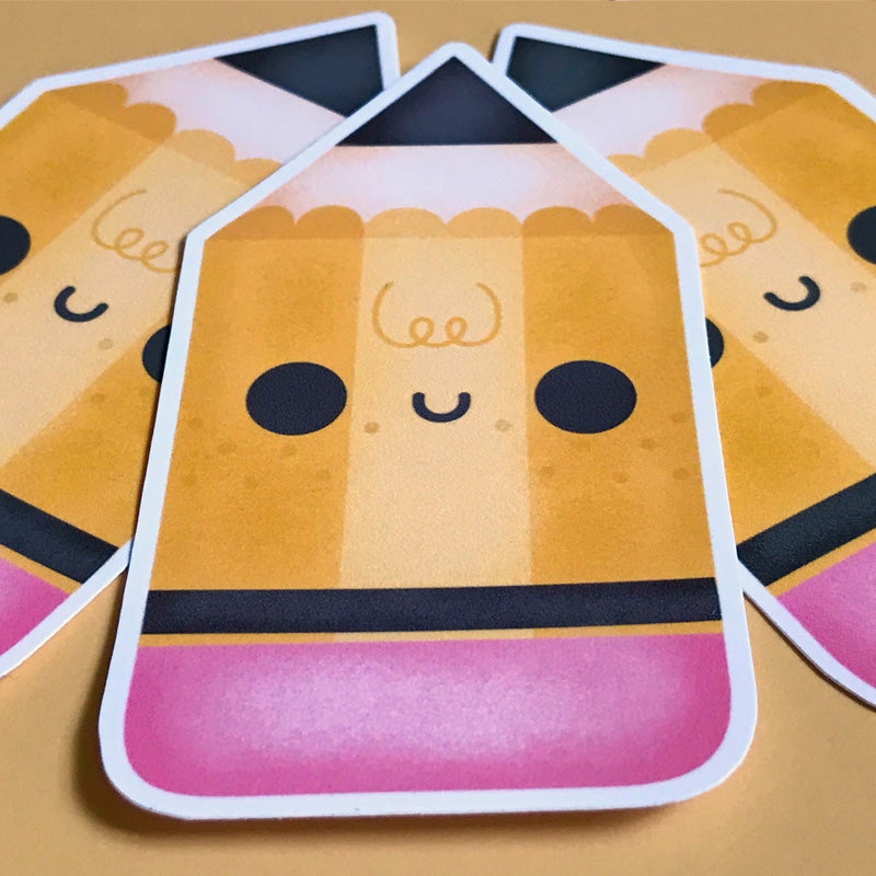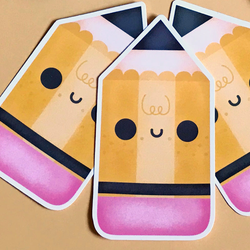 Cute little pencil sticker | Glossy white vinyl | Die Cut sticker