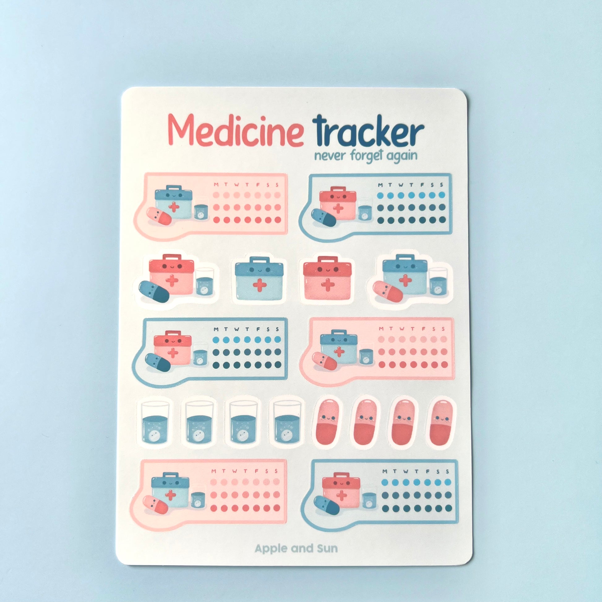 Medicine tracker stickers | Glossy white vinyl | Planner stickers sheet
