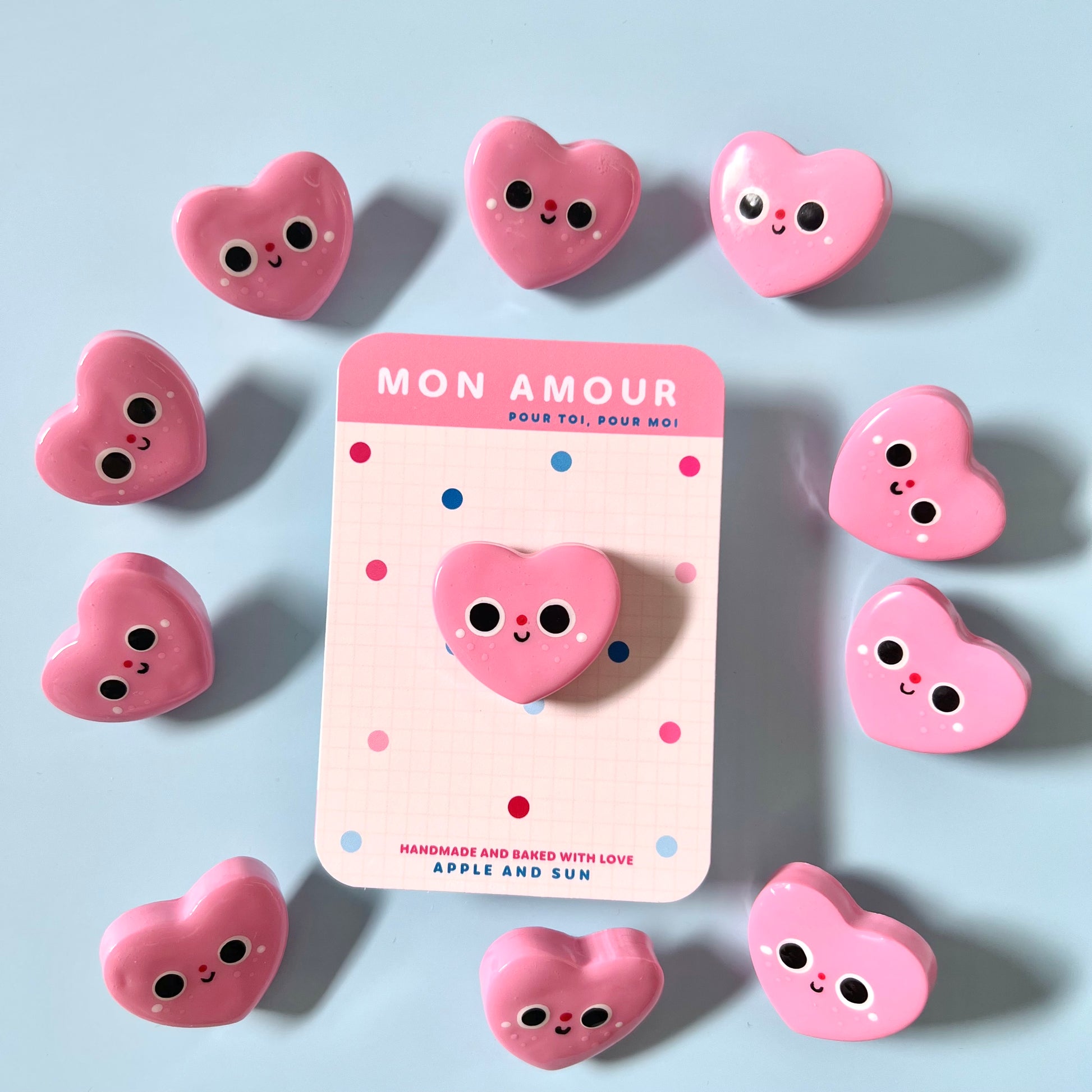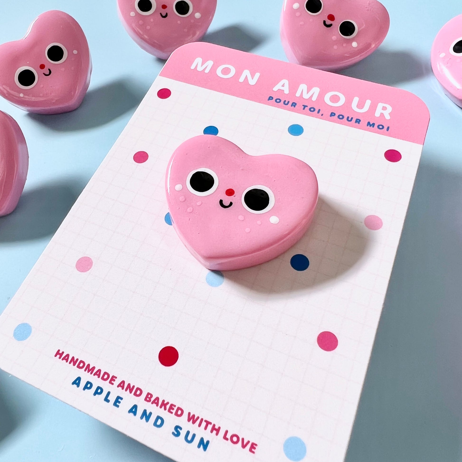 Get ready to fall head over heels for this absolutely adorable brooch! Handcrafted with unmatched expertise in polymer clay, this candy-pink marvel is the perfect accessory to inject a dose of whimsy into your style.