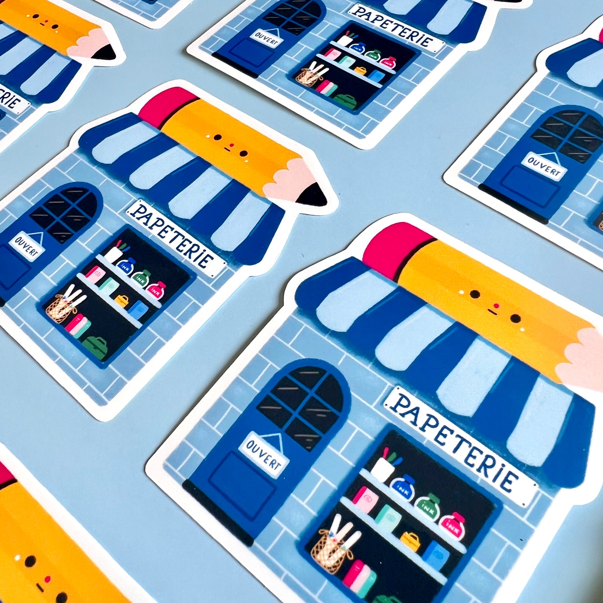 Dive into a little world full of sweetness with this sticker featuring an adorable stationery shop front. The delicate details and colors create a warm, joyful atmosphere, perfect for brightening up your notebooks, planners, or letters.