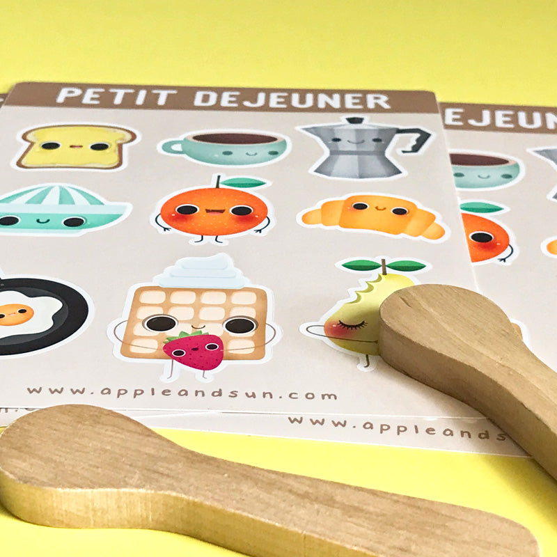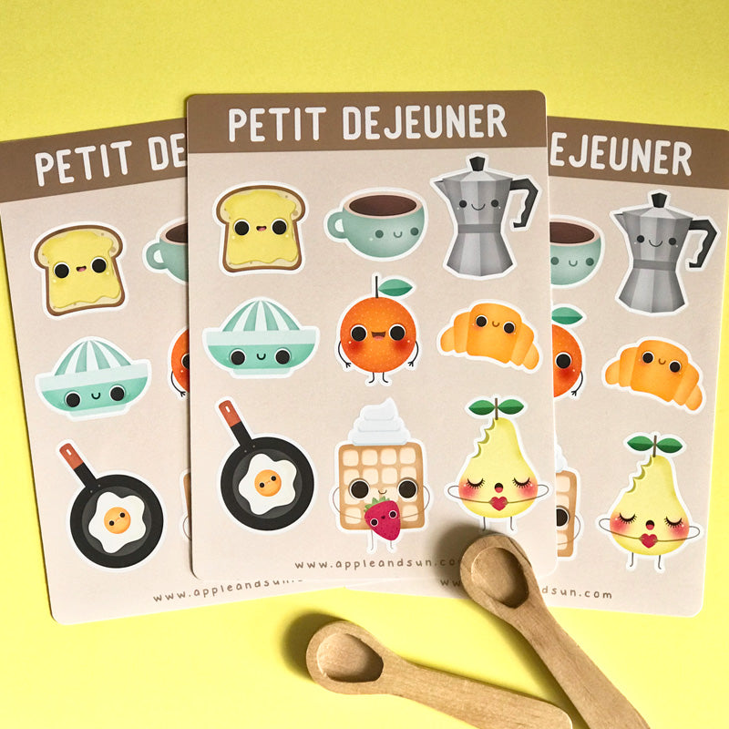 Petit Déjeuner breakfast stickers | Glossy white vinyl | Food stickers sheet |
