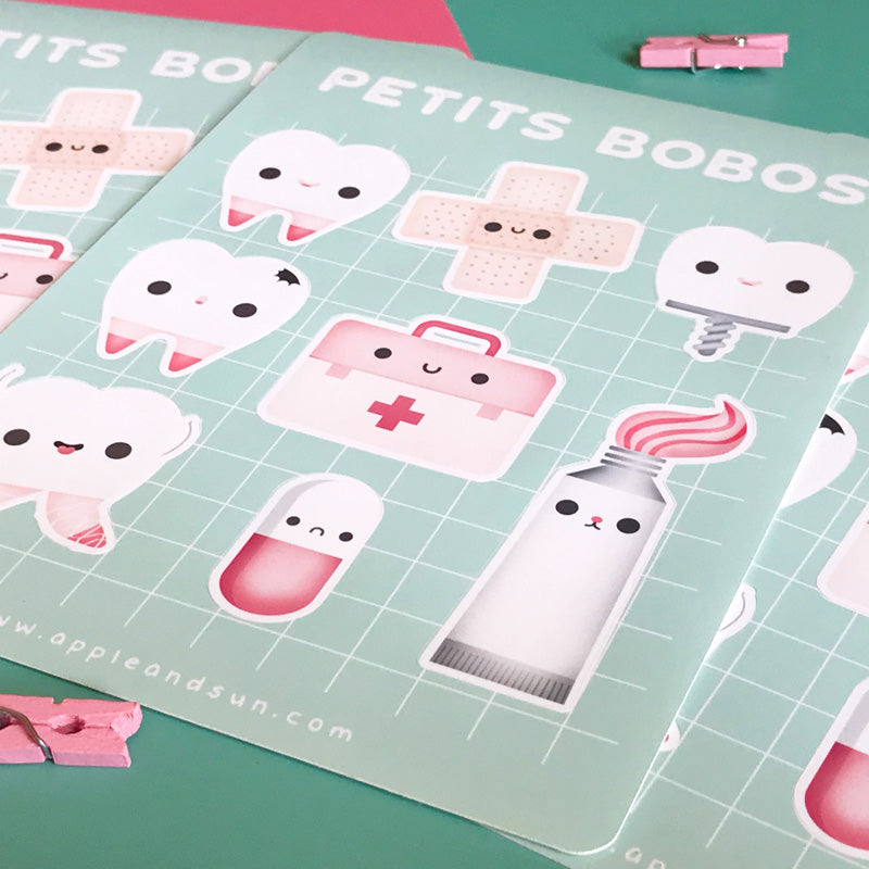 Petits Bobos stickers | Glossy white vinyl | Medical stickers sheet