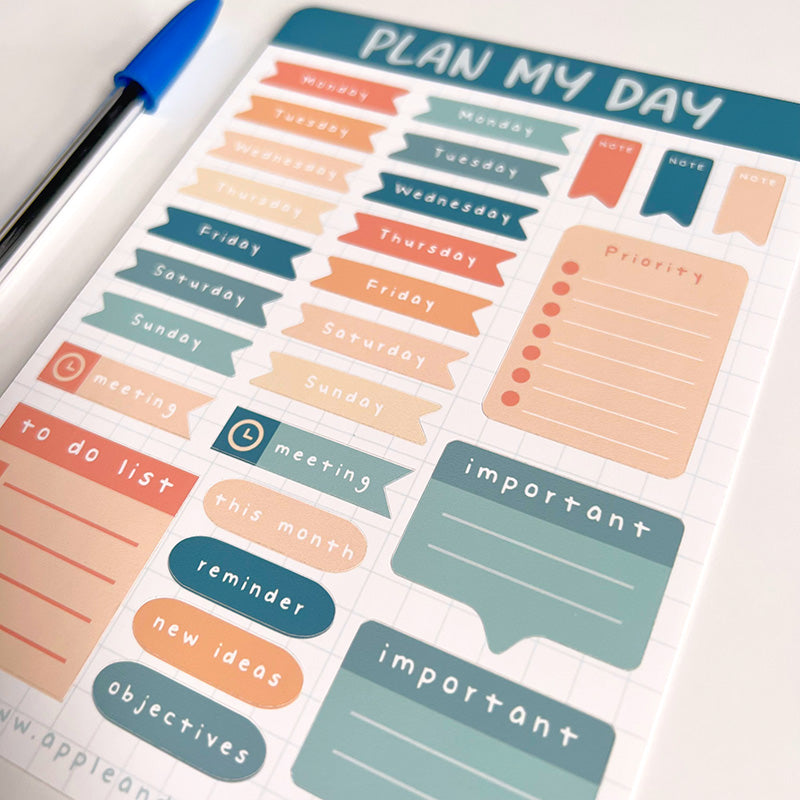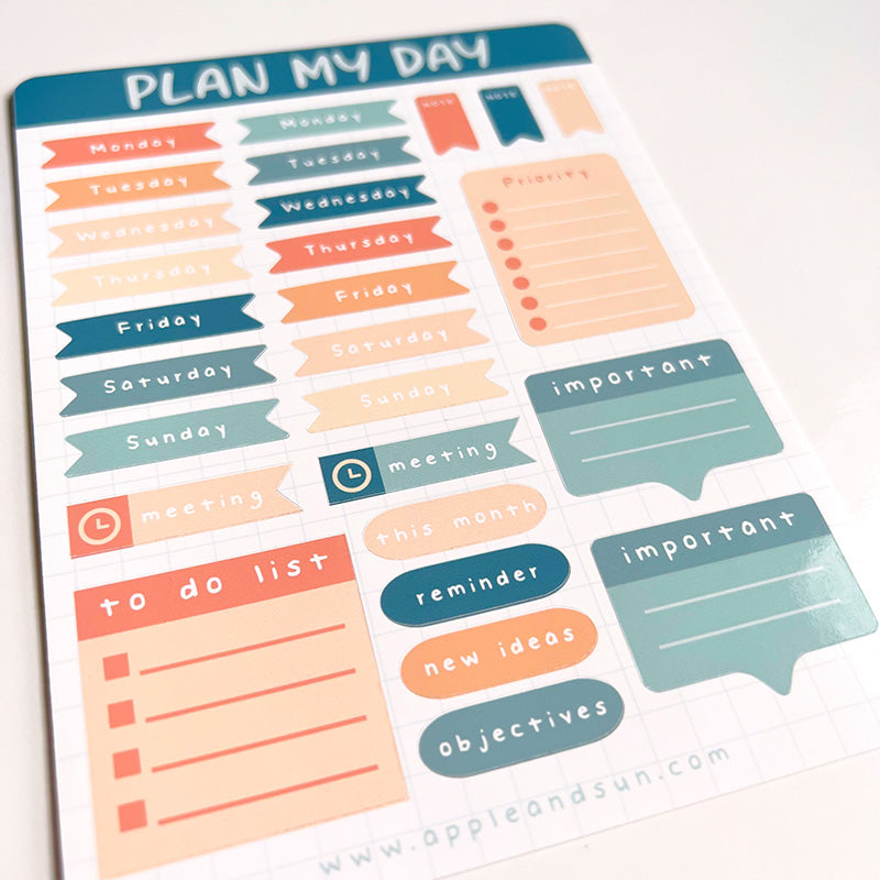 Plan my day stickers | Glossy white vinyl | journaling stickers sheet |