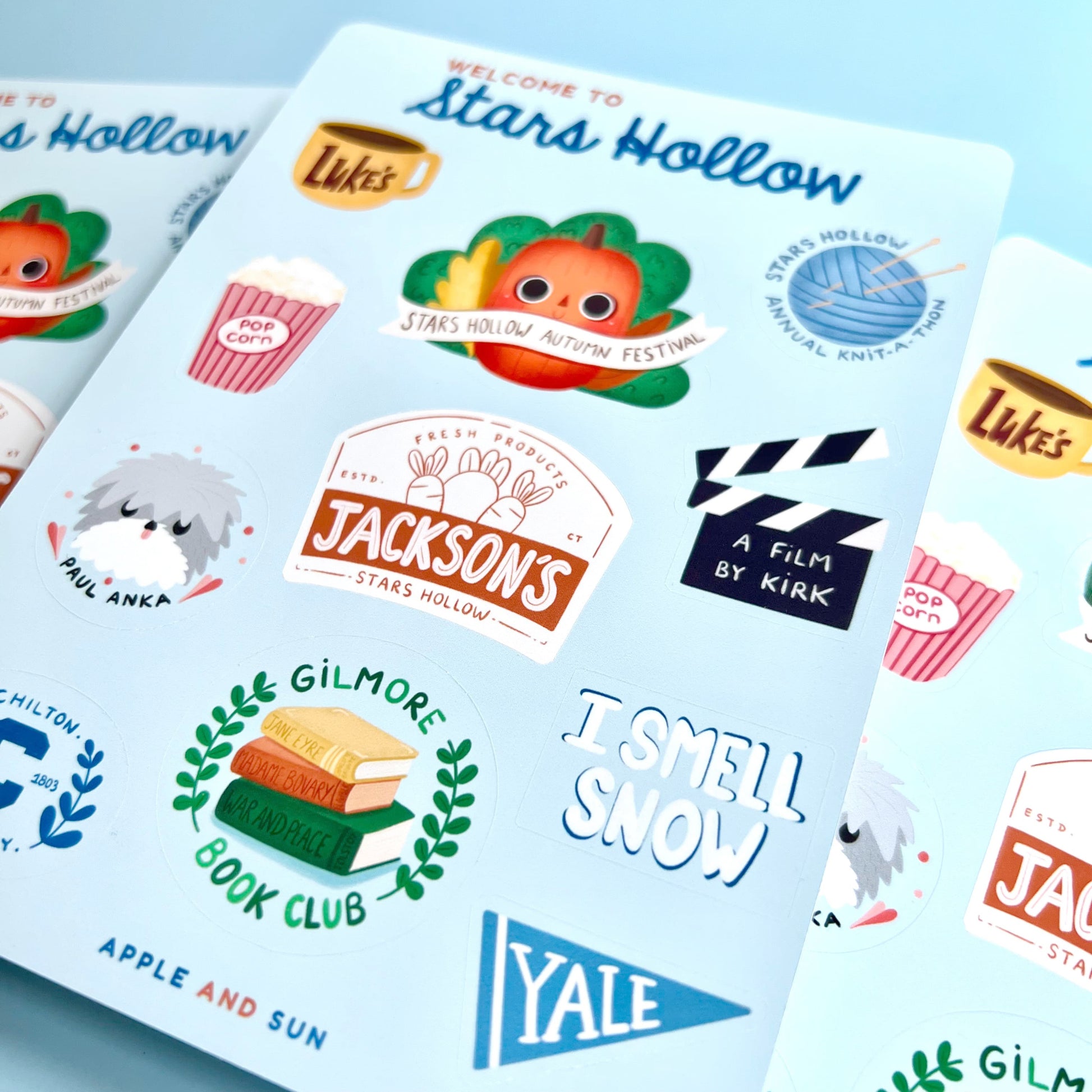 Stars Hollow stickers | Glossy white vinyl | Gilmore Girls stickers sheet