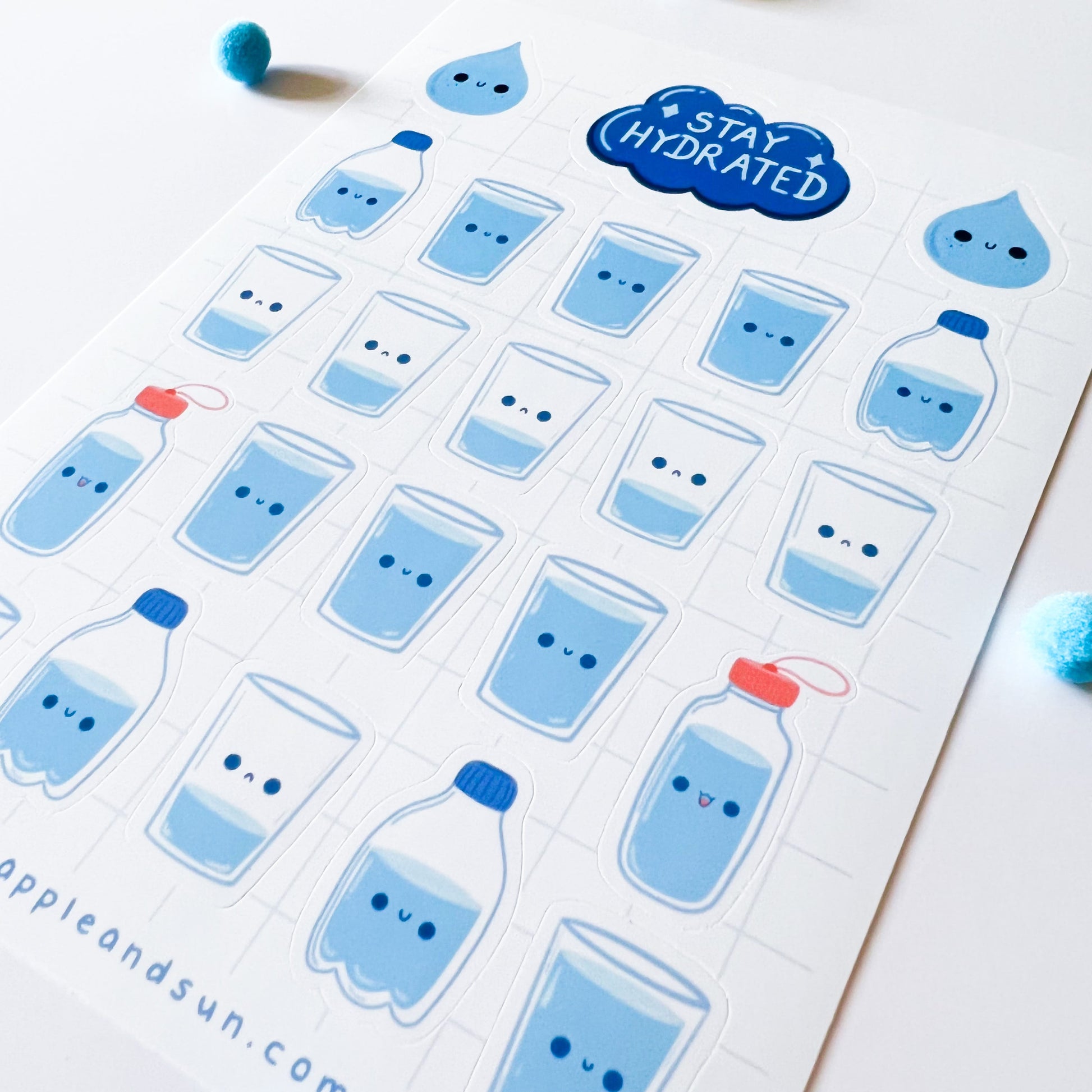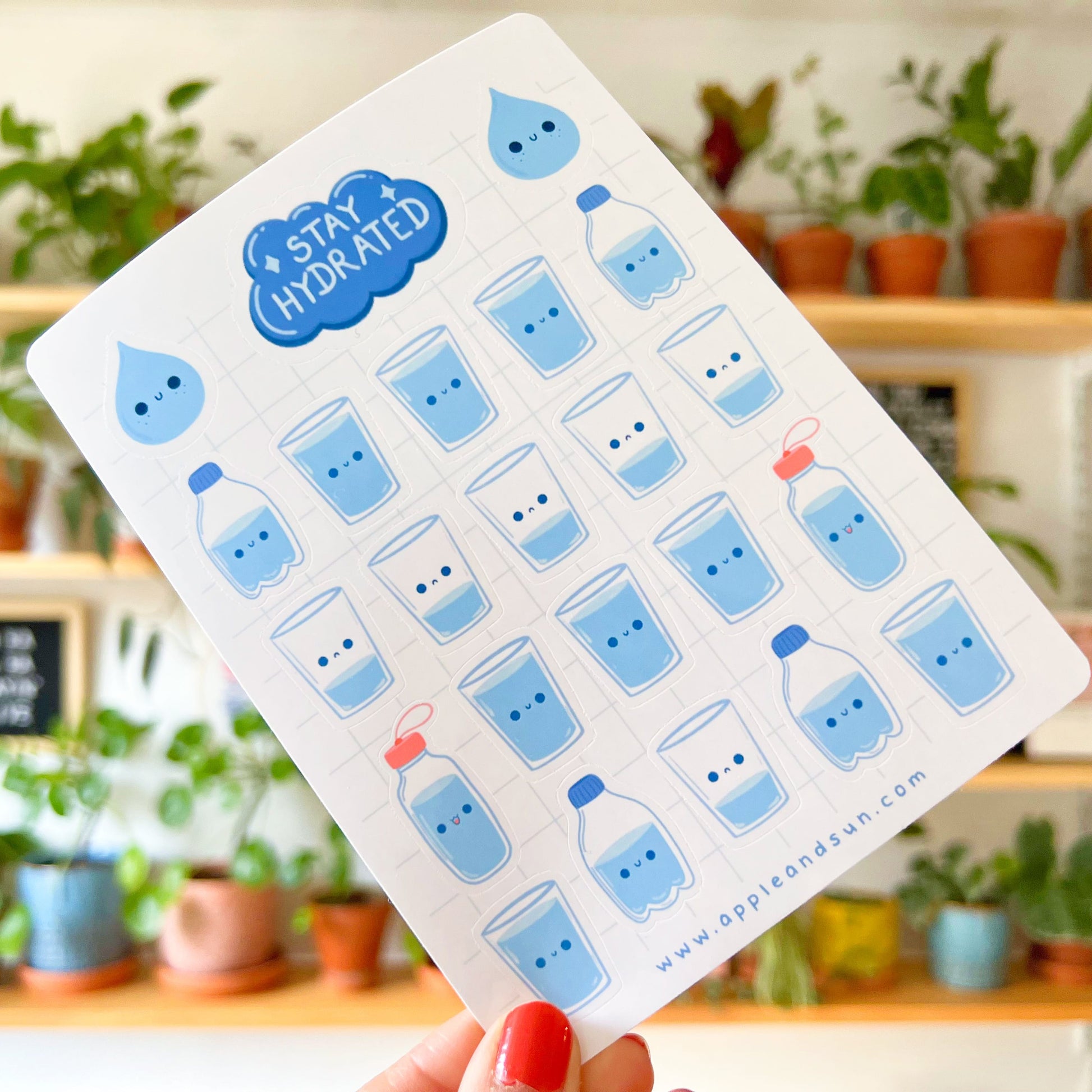 Dive into the enchanting world of health and hydration with our adorable sticker sheets! Imagine yourself surrounded by tiny water bottles and sparkling glasses, each sticker becoming your faithful companion in your daily quest to stay hydrated.