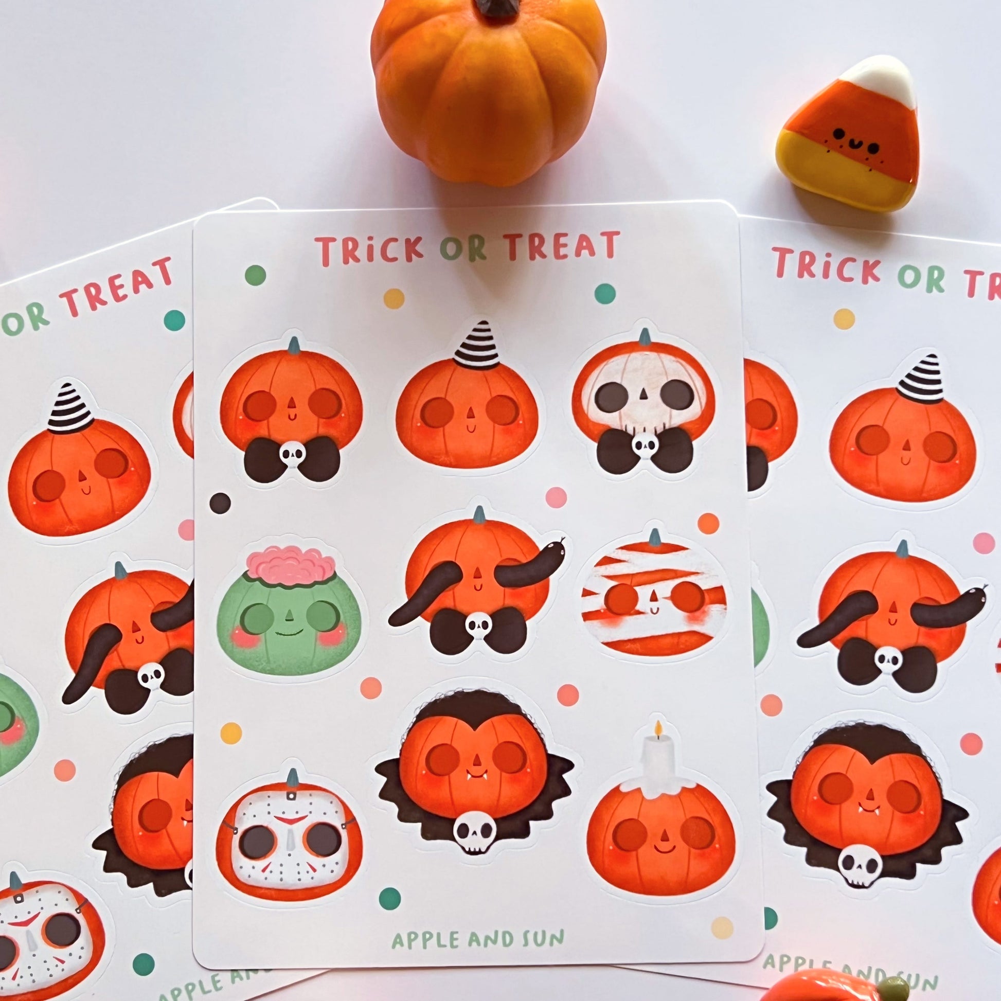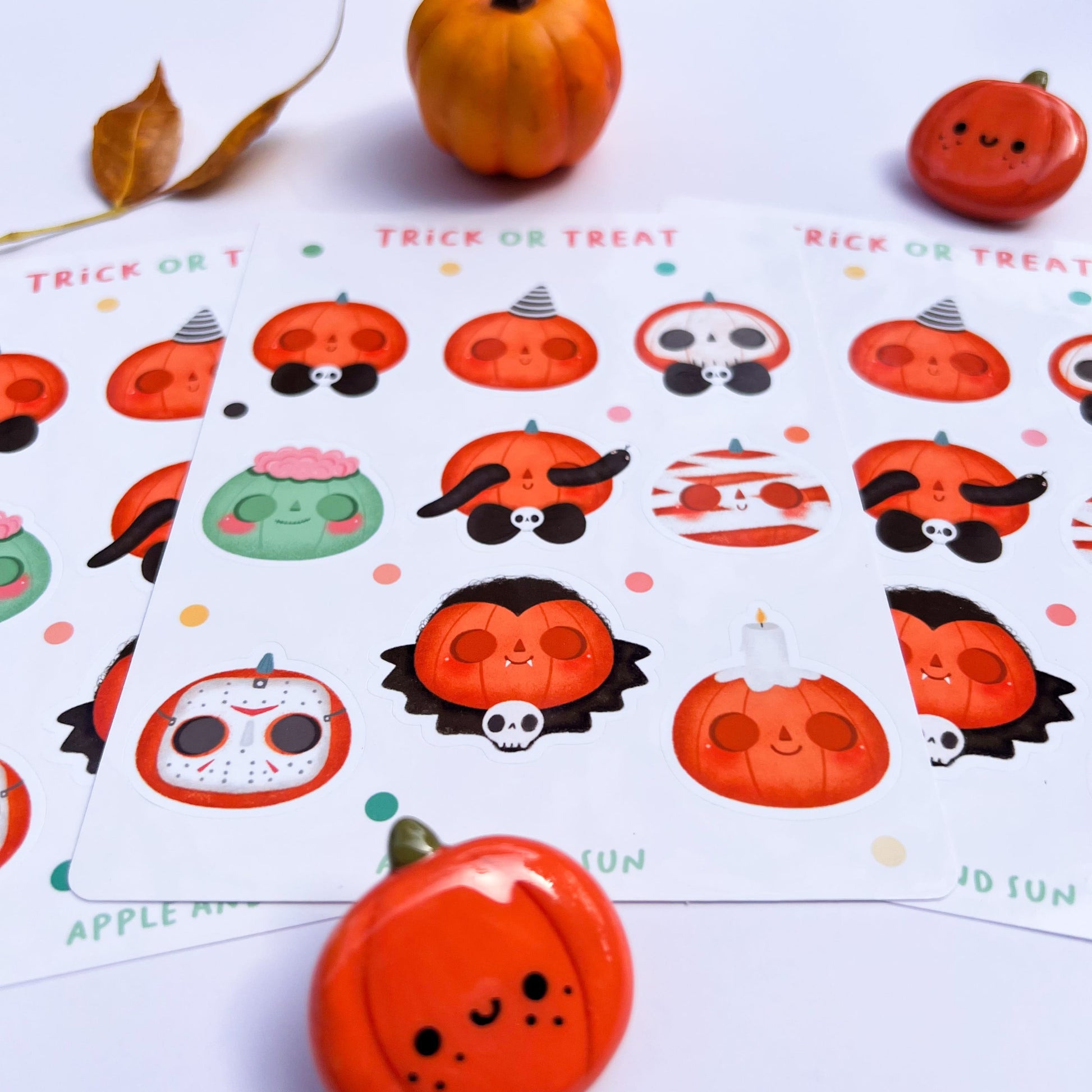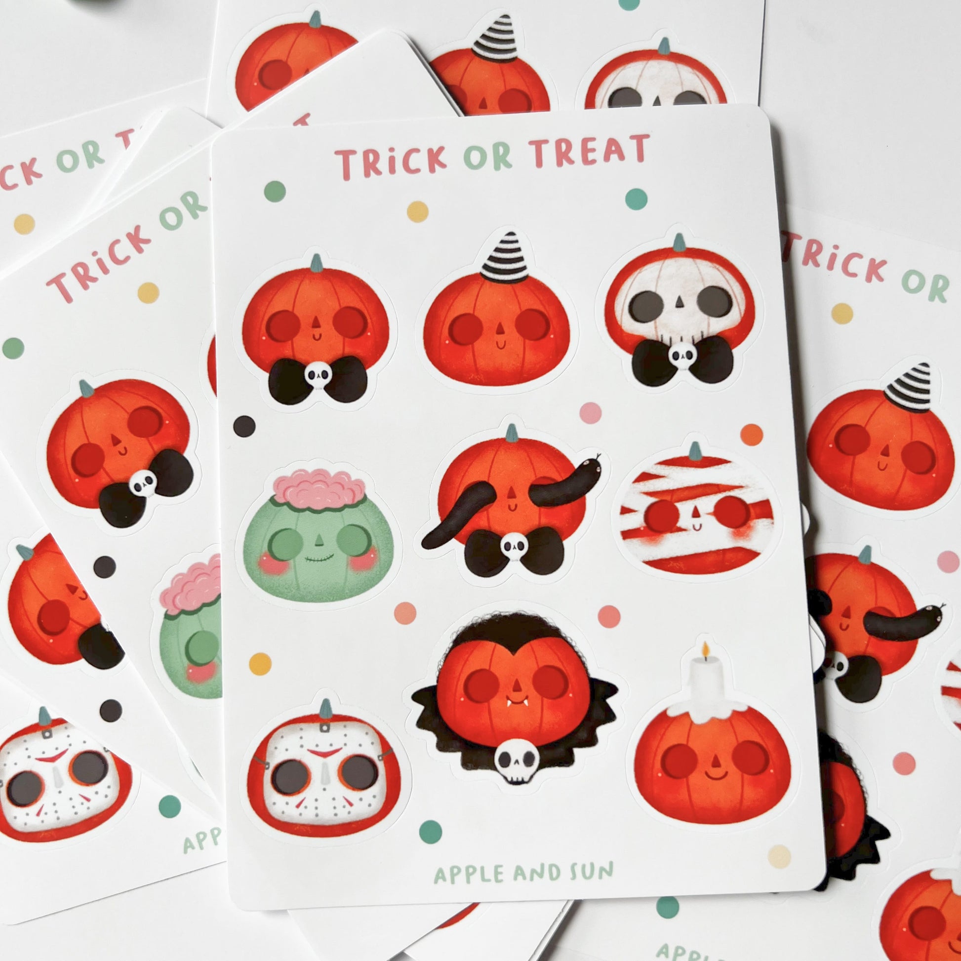 Trick or treat stickers | Glossy white vinyl | Halloween stickers sheet |