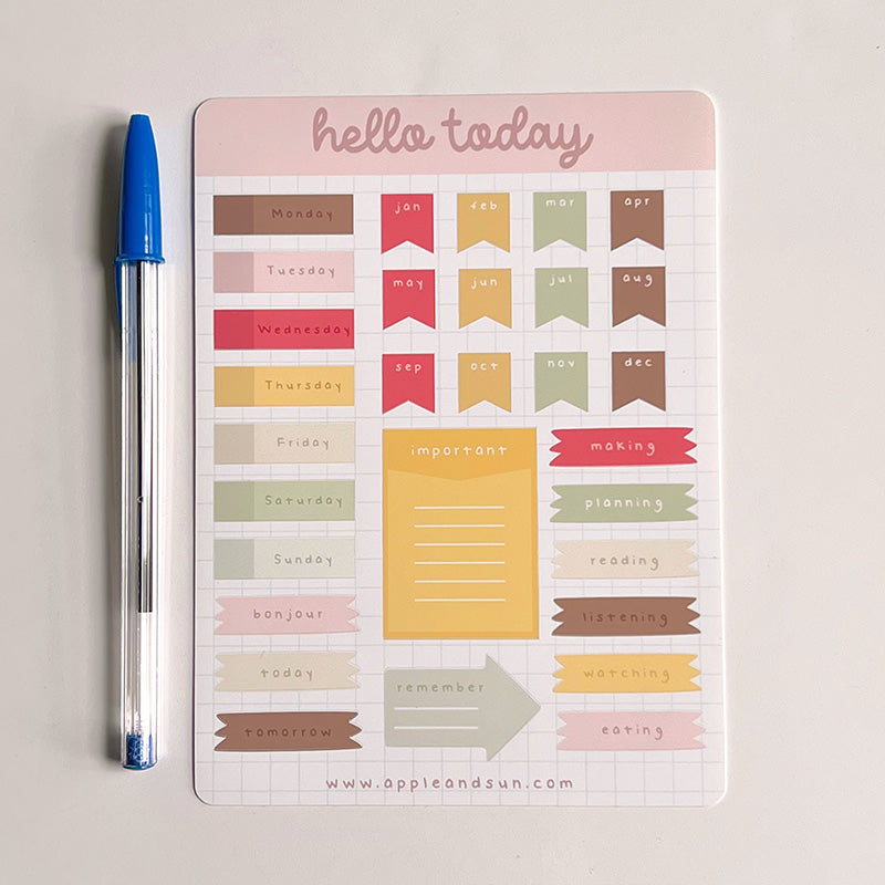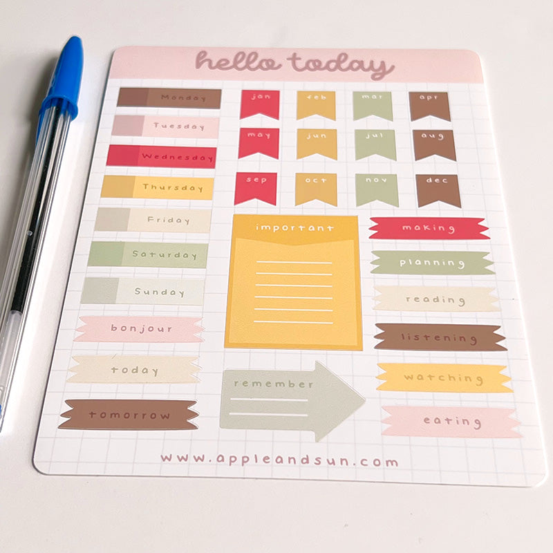 Hello today stickers | Glossy white vinyl | journaling stickers sheet |