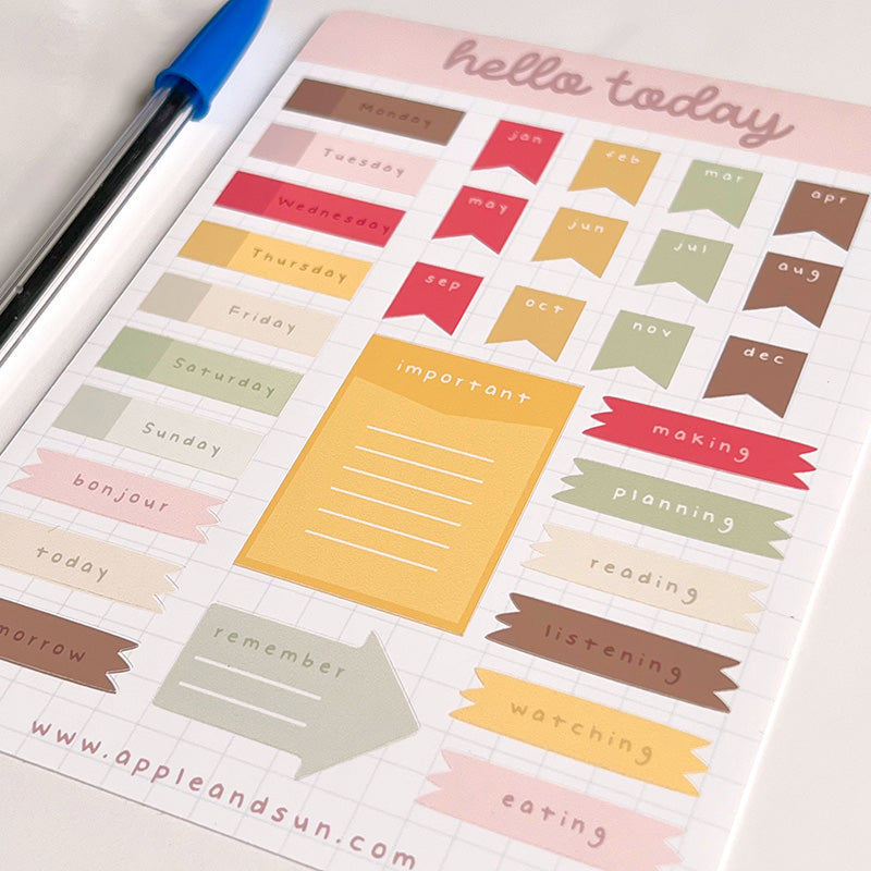 Whether it's marking an important date, highlighting your top-priority tasks, or simply adding a touch of sweetness to your everyday, our stickers are the perfect choice. You can customize each page according to your desires and let your imagination run wild.