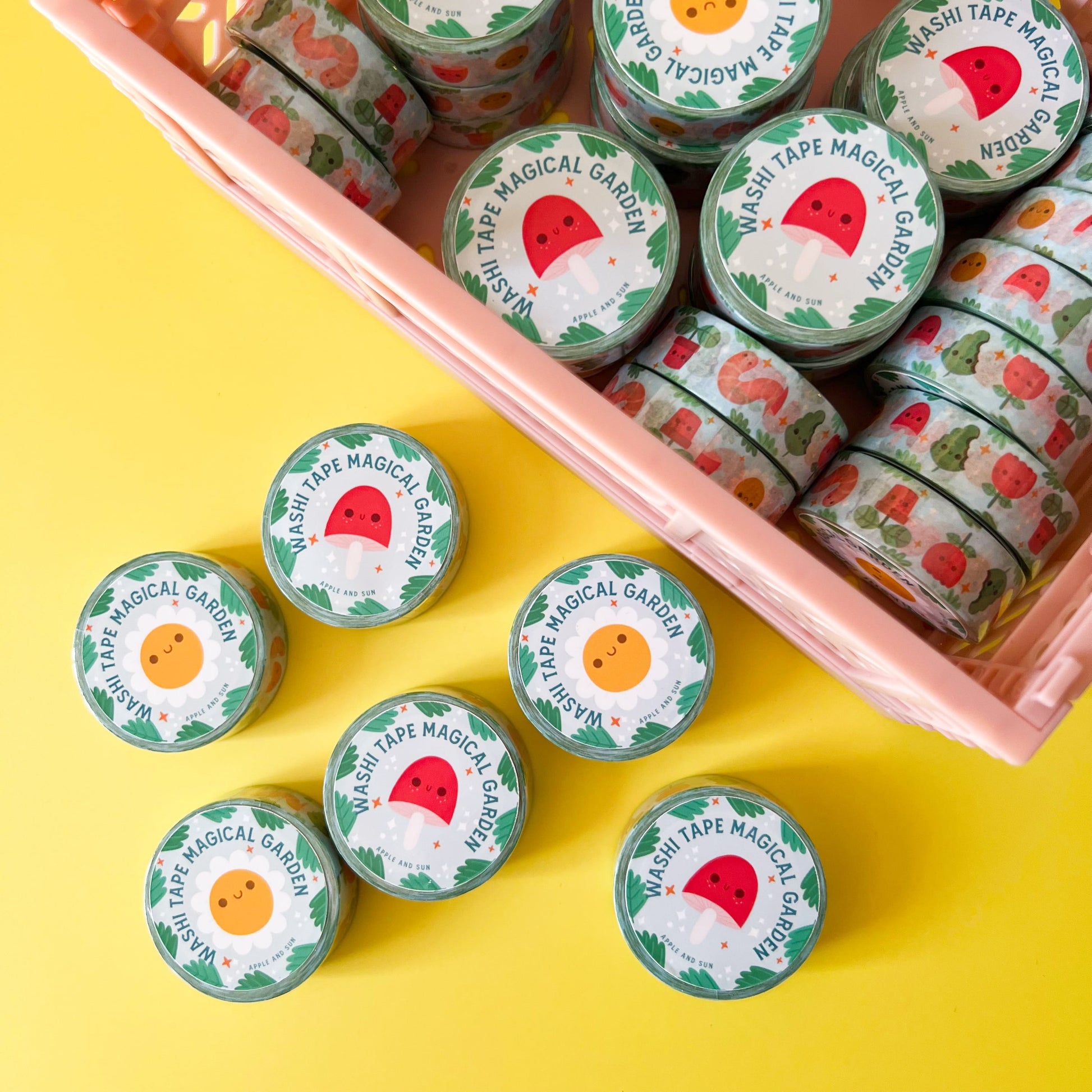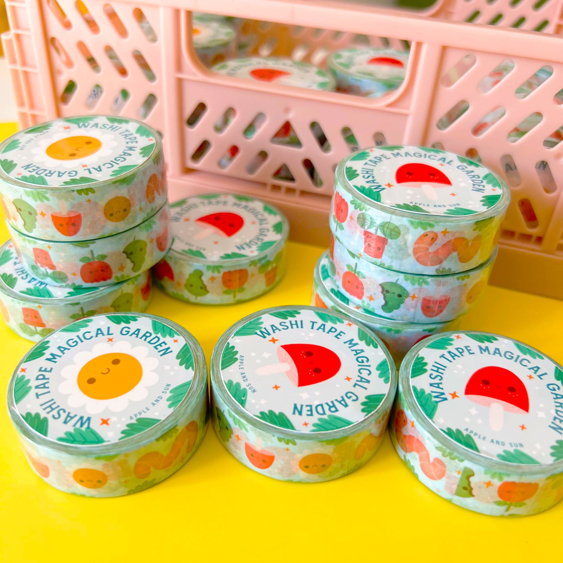 Picture yourself strolling through a magical garden where each mushroom, every flower, each earthworm, and every leaf springs to life with vibrant colors and captivating details. The "Magical Garden" Washi tape roll captures the very essence of this fairy-tale experience.